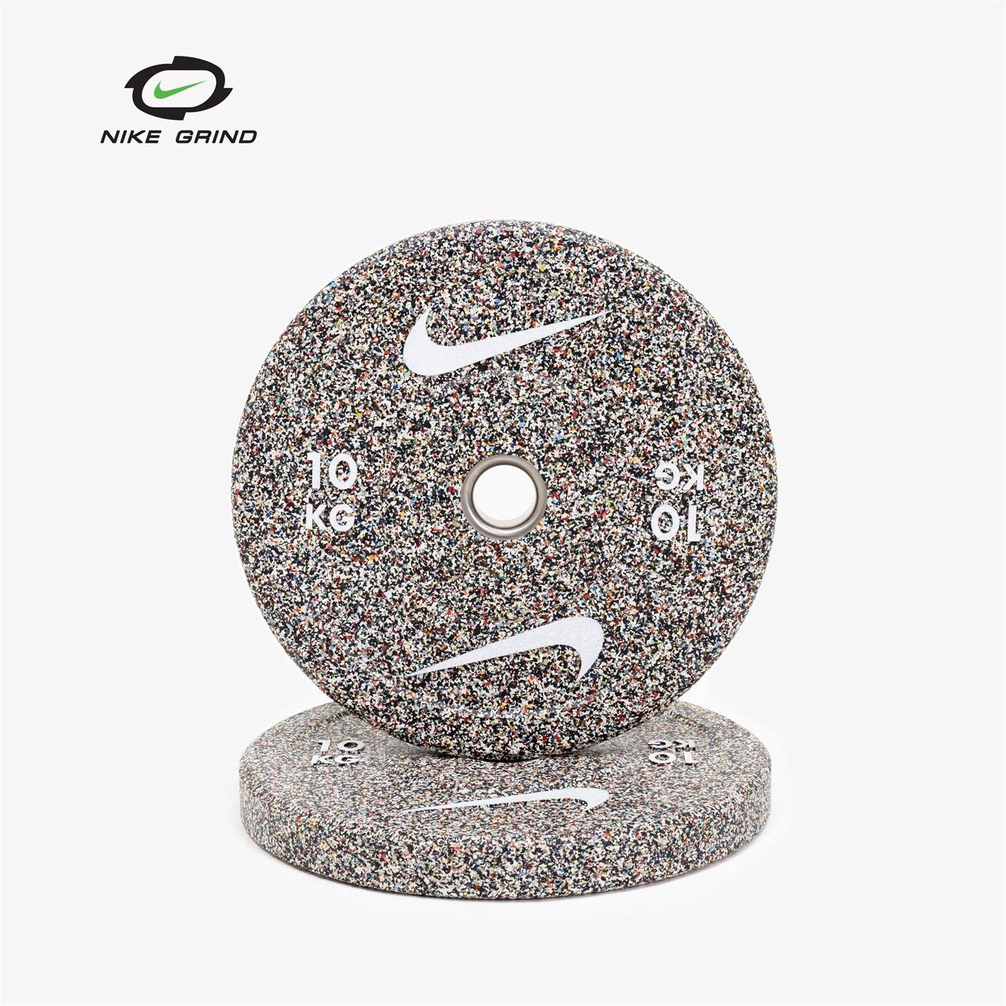 Nike Grind Bumper plates are crafted from Nike Grind, a byproduct of Nike's footwear manufacturing process.