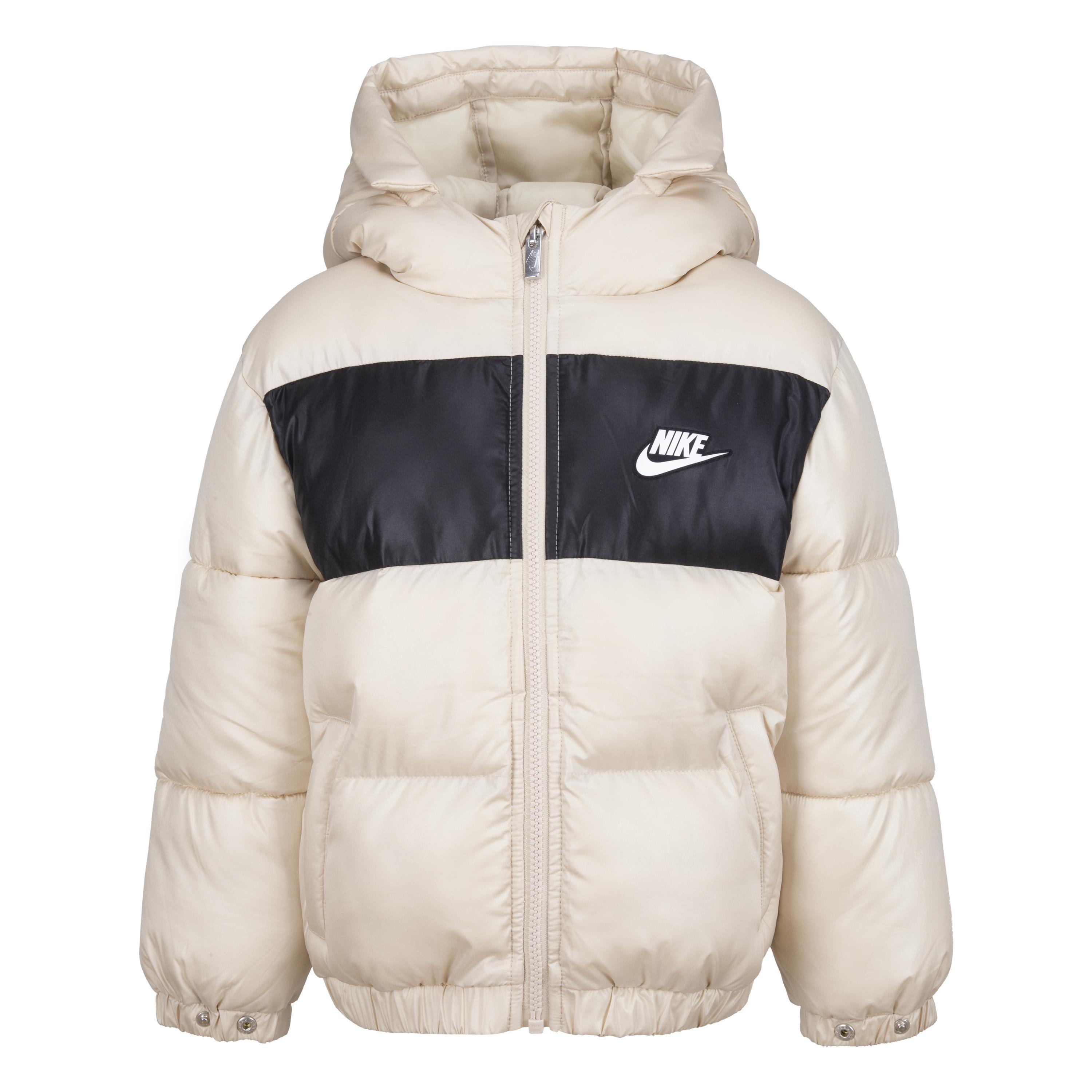 Let your little one stay cosy in style with Nike's Water Resistant Puffer Jacket. Featuring the iconic Swoosh logo, symbolising performance and innovation. From winter walks to outdoor adventures, this padded jacket is the perfect layering piece.