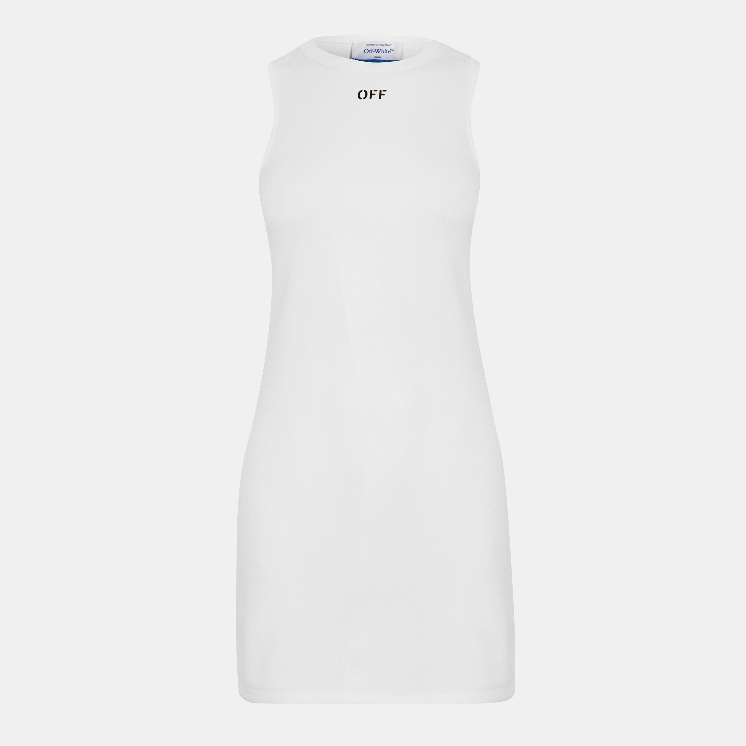 The Off-White Women's Floor Length Maxi Dress brings bold tailoring to a full-length design. Structured design meets a flowing form for contemporary styling.