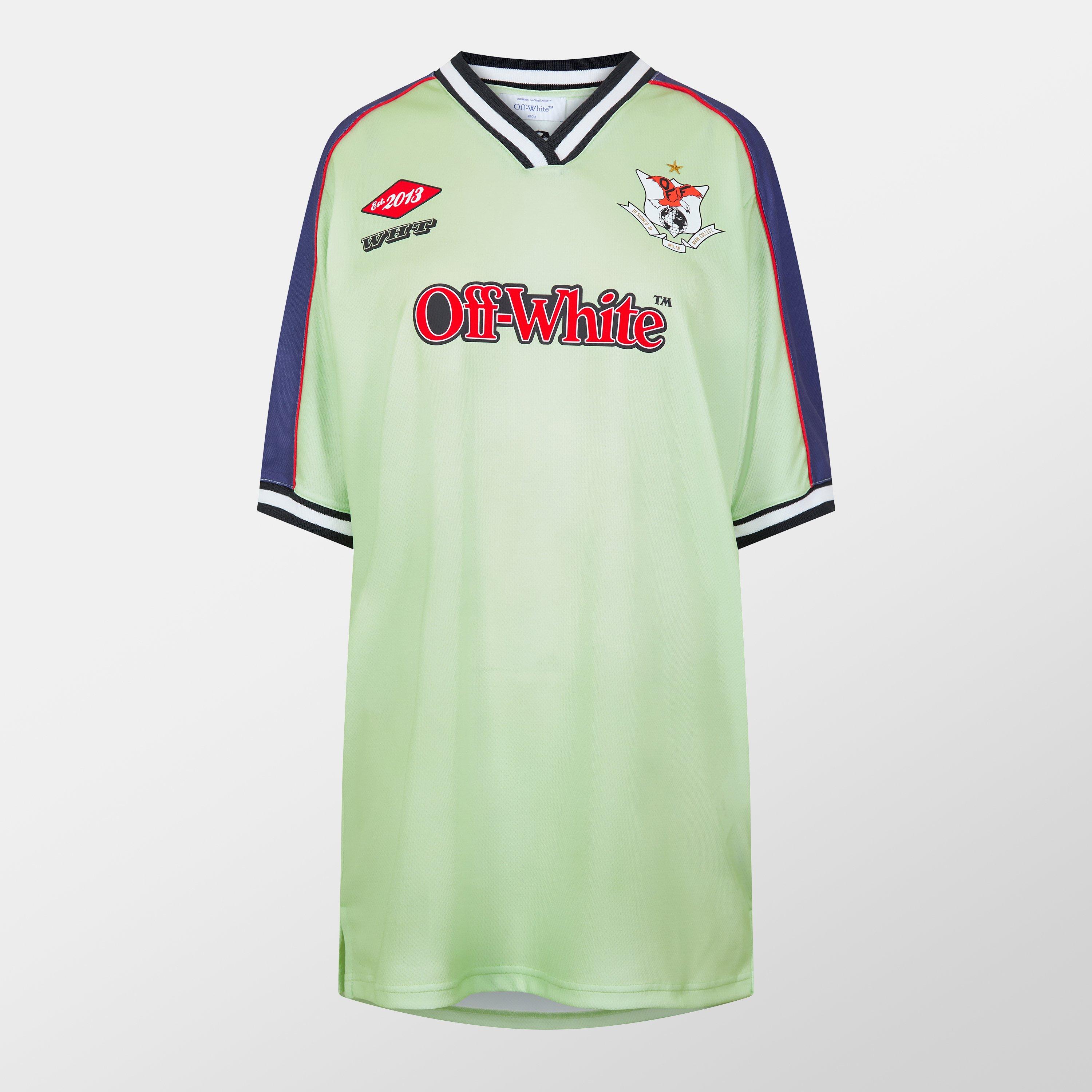 Bold graphics meet comfort in Off-White's Soccer Dress. This cute jersey-style dress features a relaxed fit with a comfortable round neckline and subtle V-detail, creating a sporty outfit look.