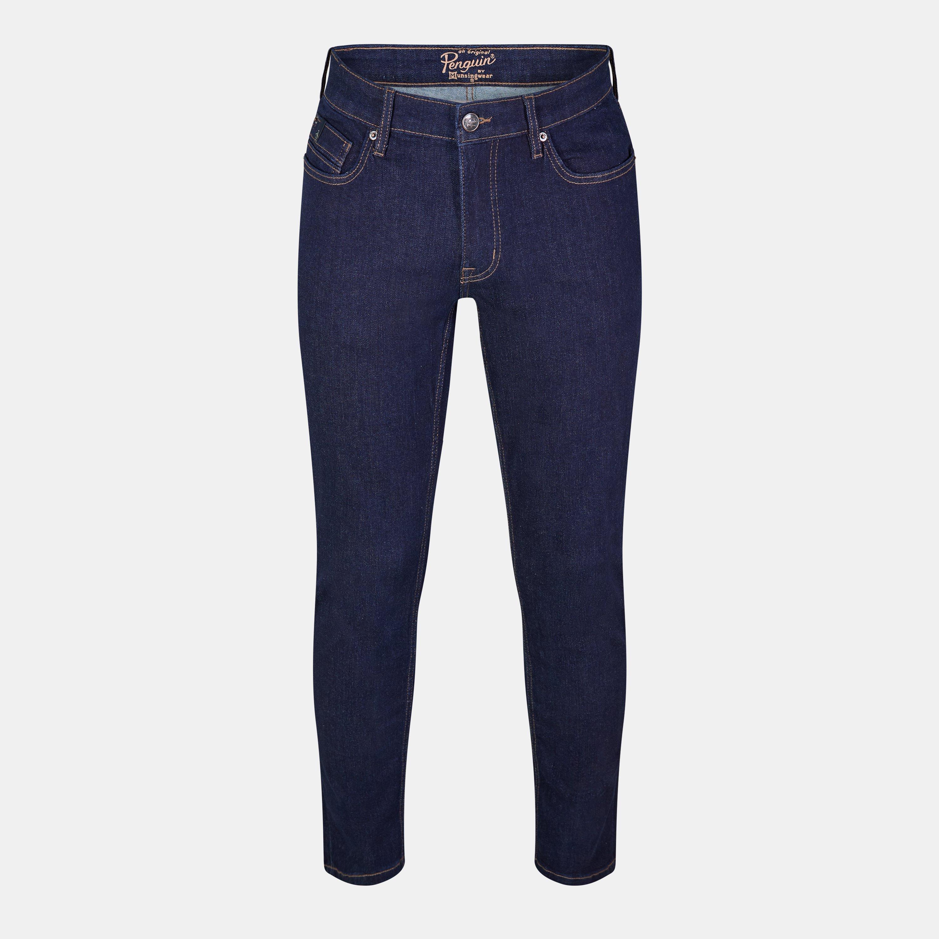 Original Penguin's Rinse Straight Leg Jeans feature a classic denim profile with a straight cut that maintains consistent width from hip to ankle. The rinse wash offers a classic look suited for everyday wear.