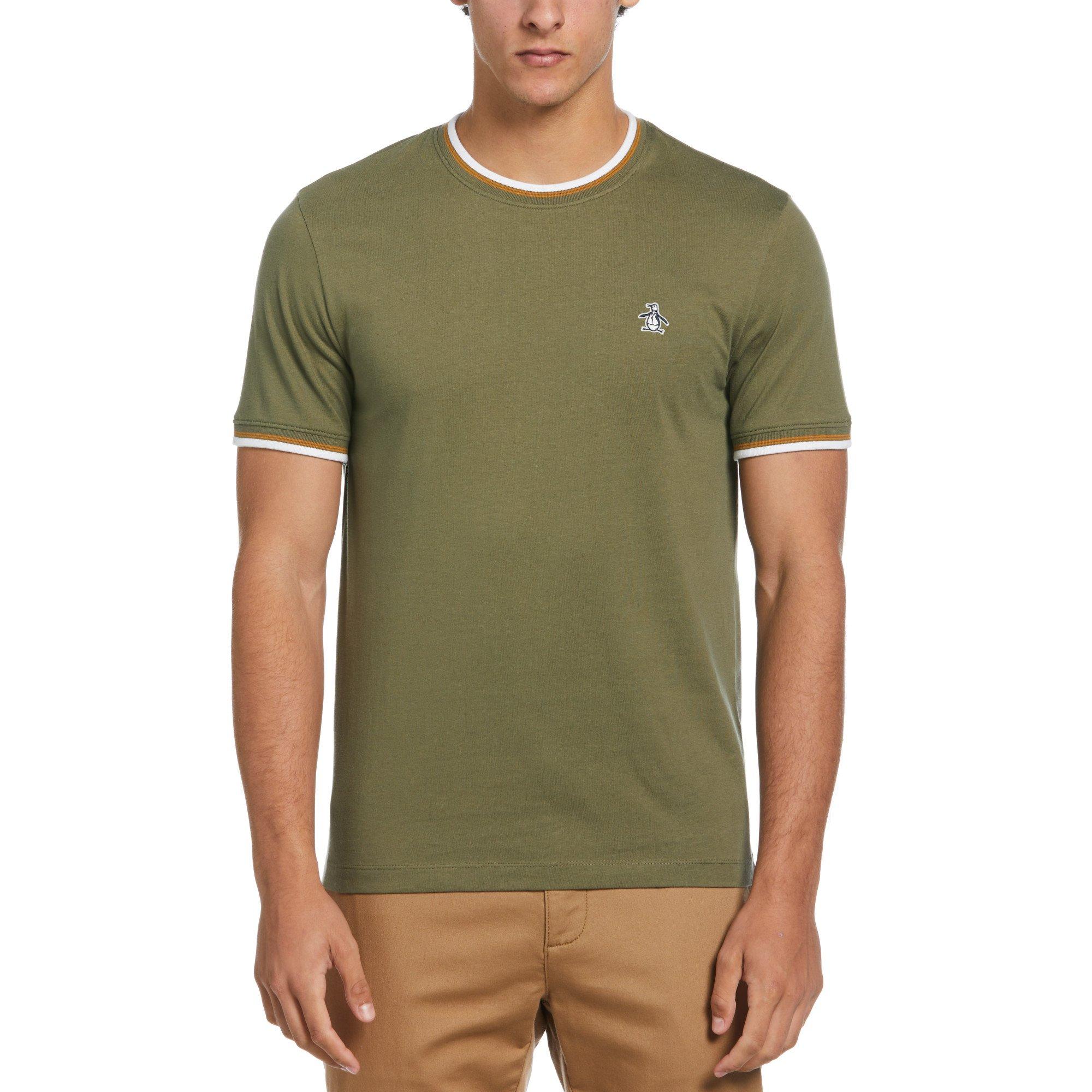 The Original Penguin Short Sleeve Tipped T-Shirt brings contrast detailing to a streamlined regular fit. Clean lines keep the profile straightforward for everyday wear.