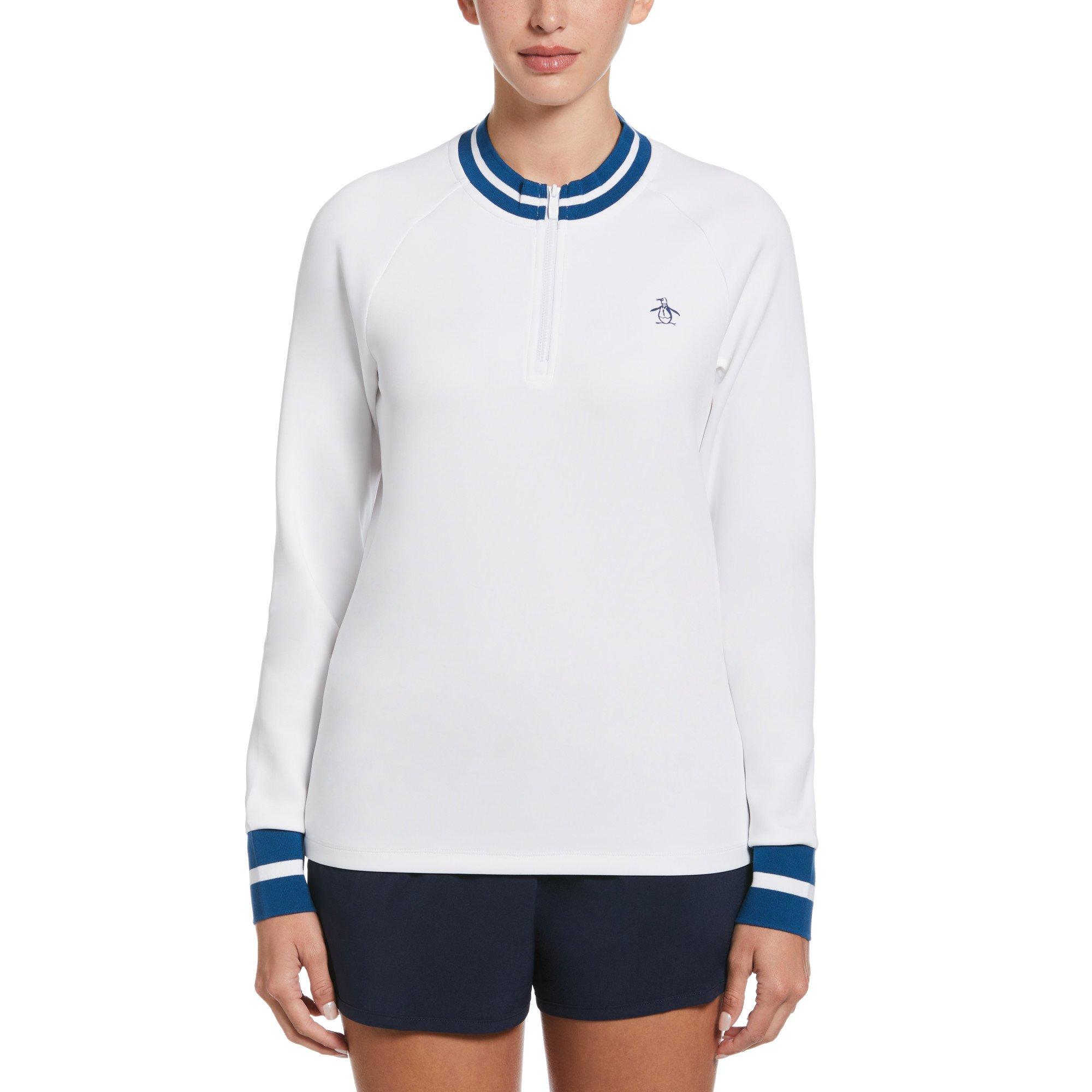 The Original Penguin Women's Quarter Zip Pullover is designed for tennis, offering a streamlined layer that sits close without adding bulk. This pullover adapts to shifting conditions on and off the court.