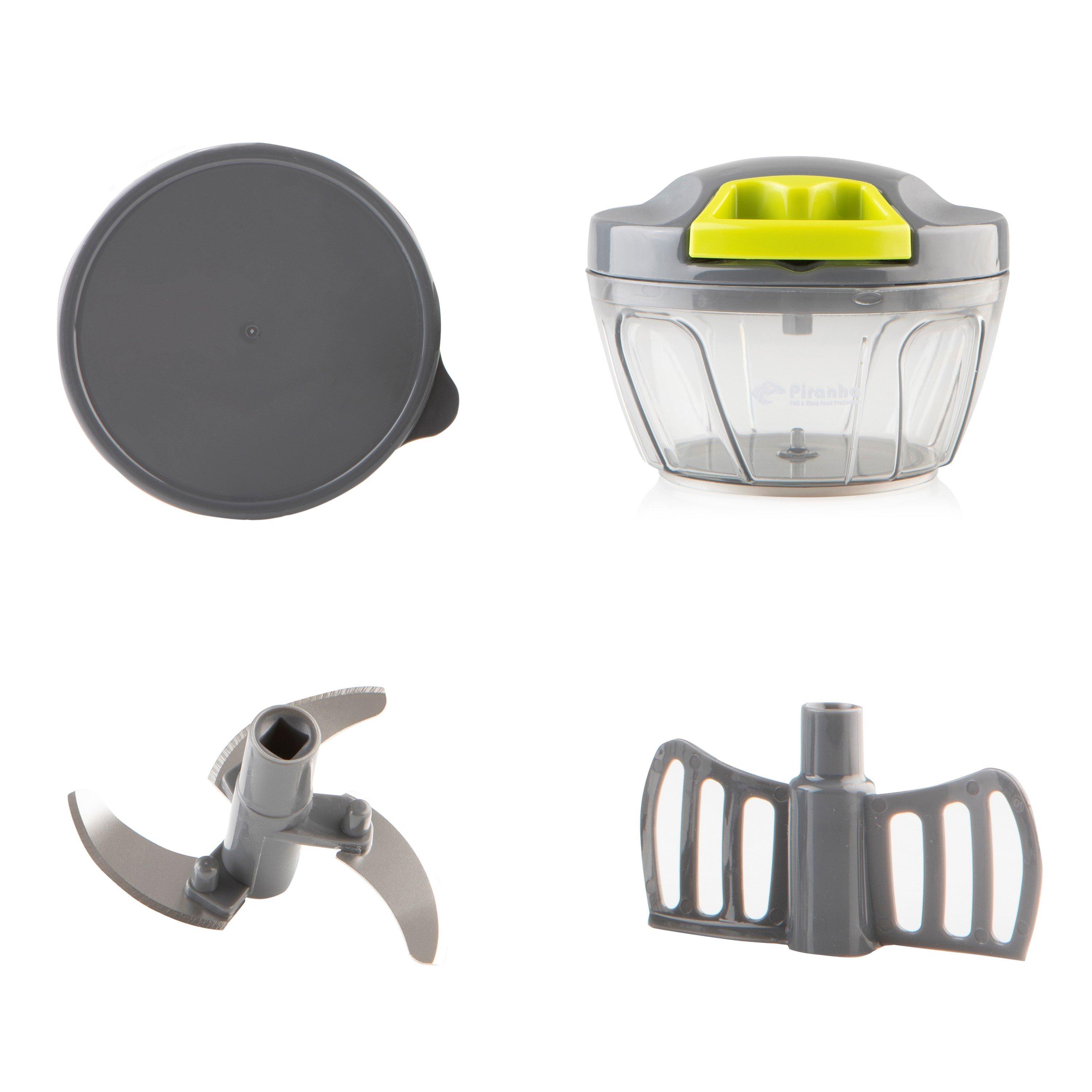 Streamlined design meets kitchen efficiency in Piranha's Pull & Chop Food Processor and Mixer. This kitchen combo features manual operation with precision blades for quick food preparation without electrical components, making it an ideal chopper for various ingredients.