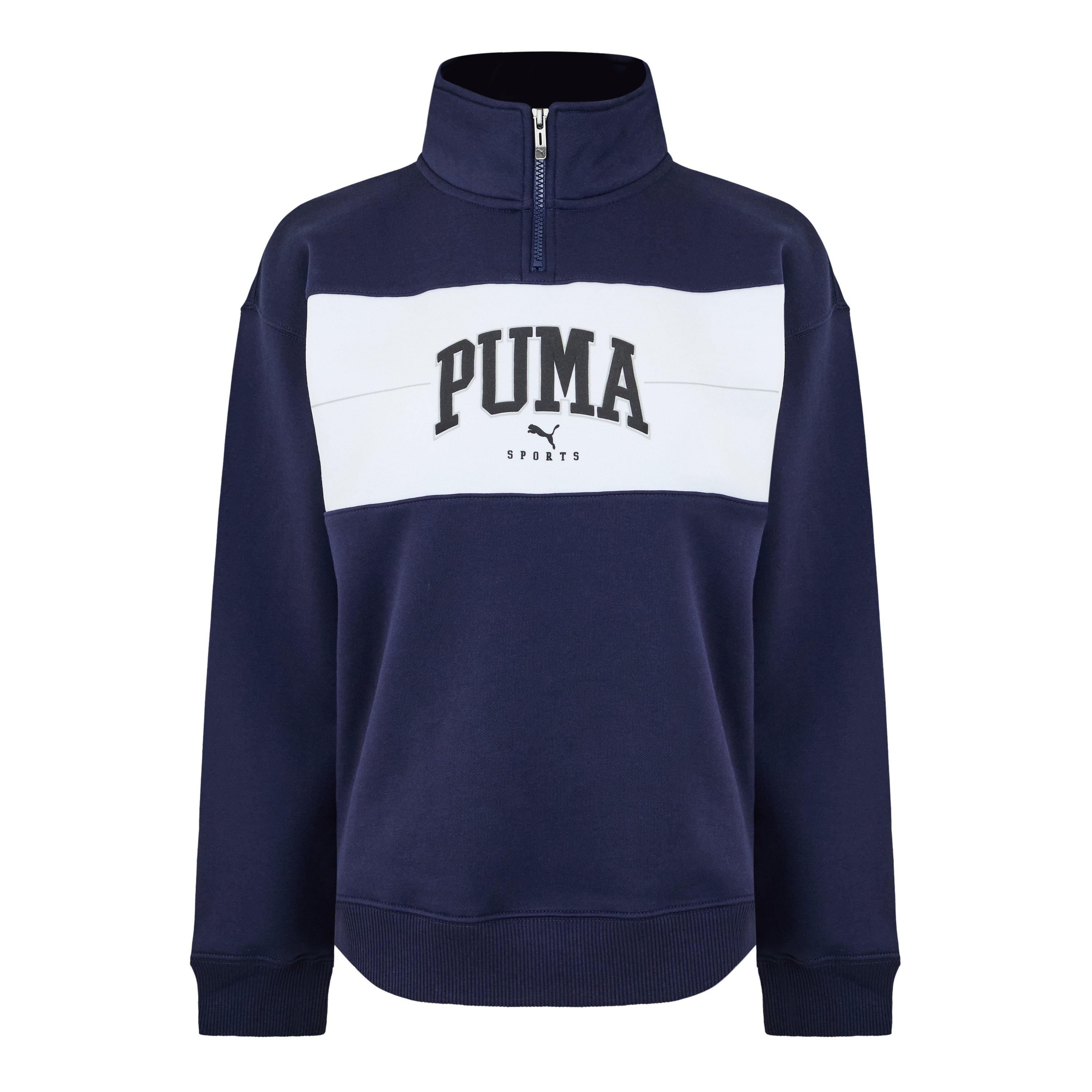 The Squad Quarter-Zip from Puma offers warmth with a modern look, featuring a partial zip design that balances comfort with contemporary athletic style.