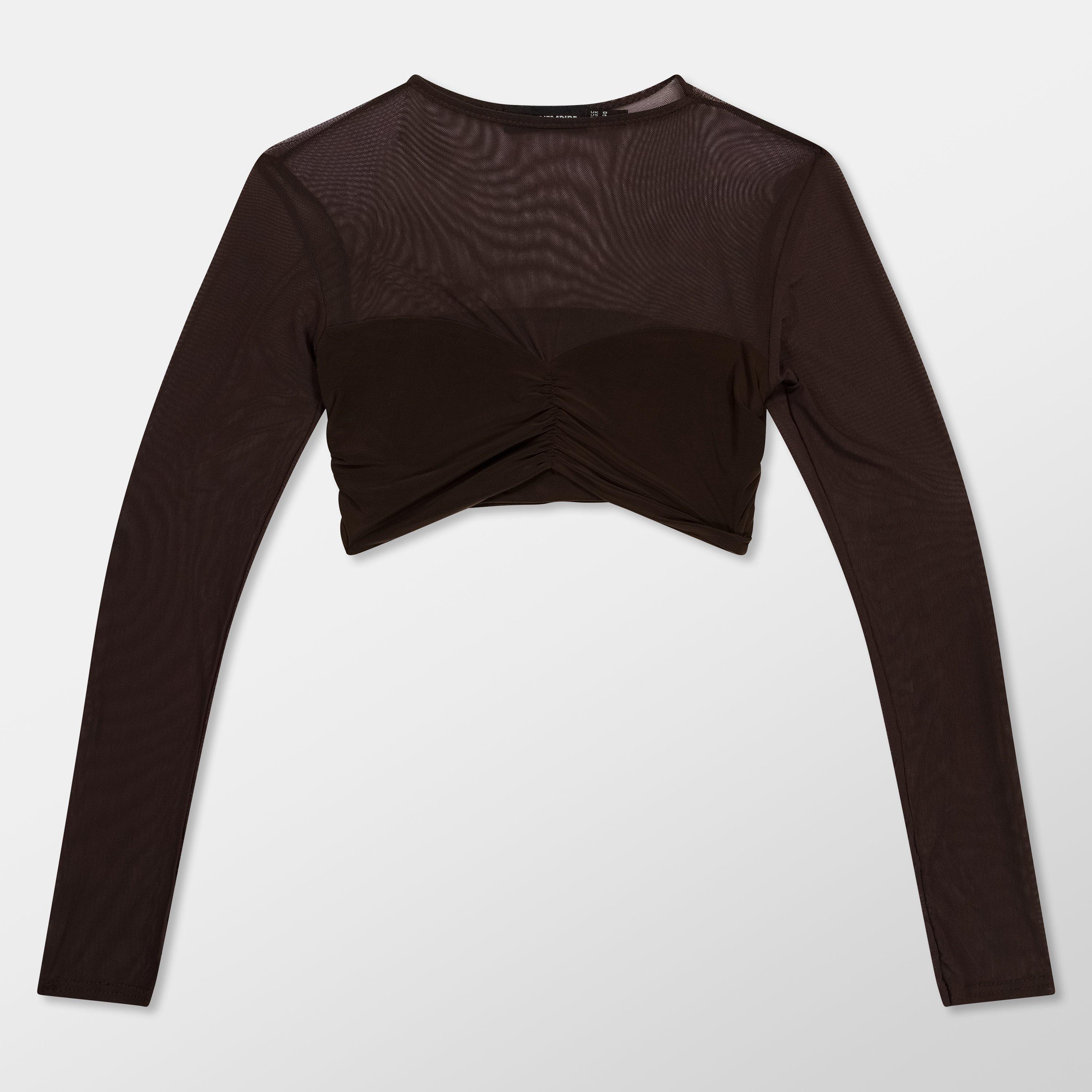 Mesh Sleeve Slinky Top Womens
