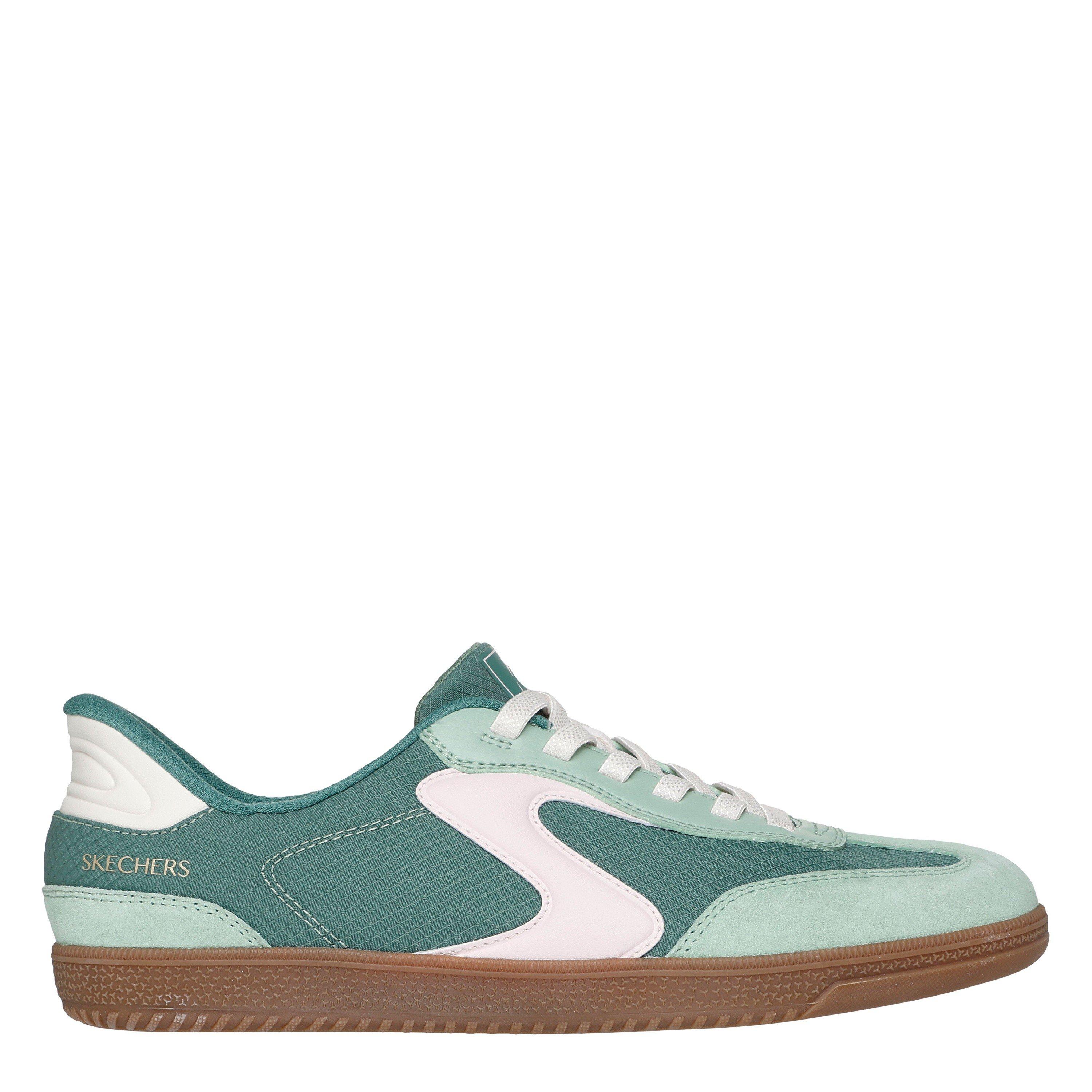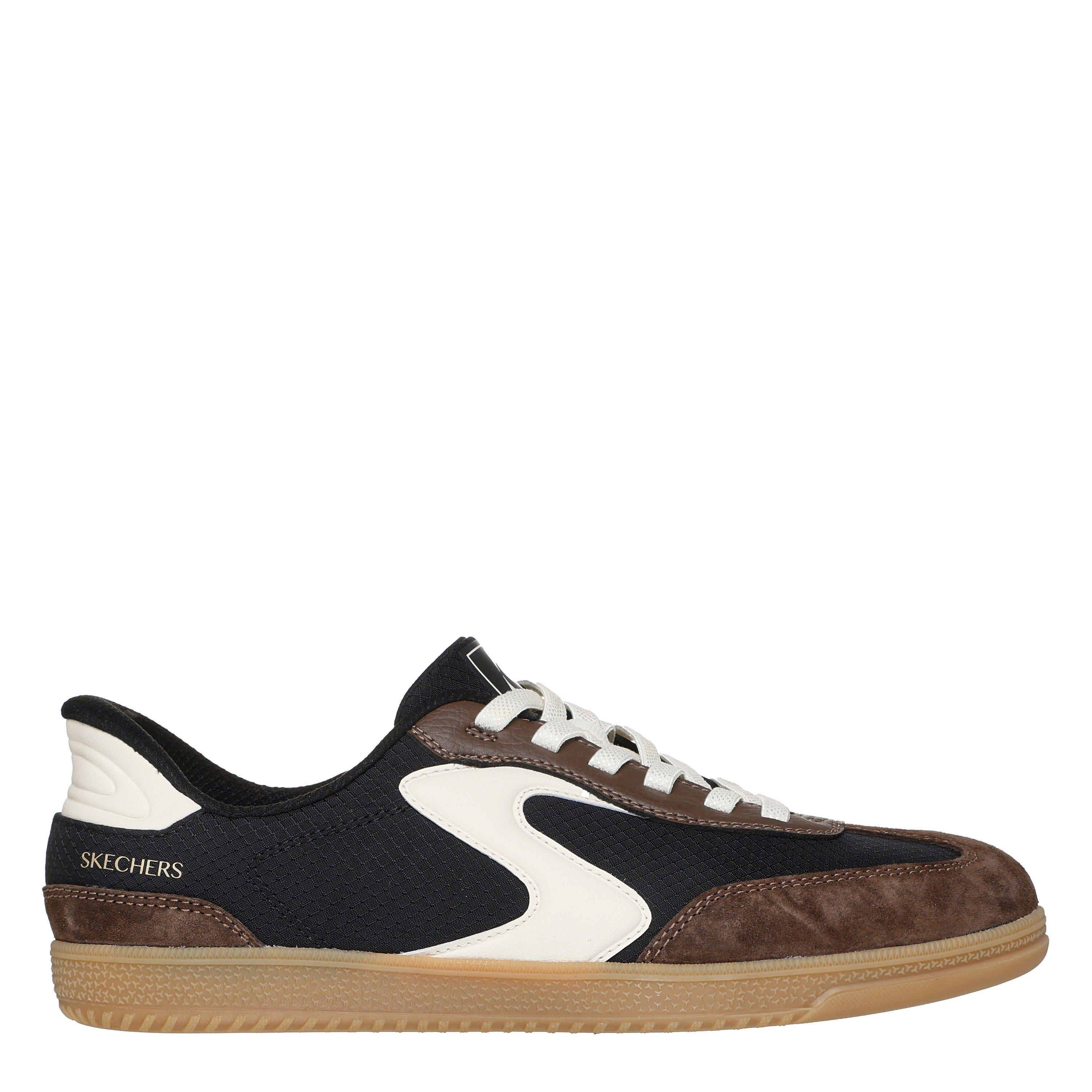 A modern classic meets easy-wearing comfort in Skechers Hands Free Slip-ins®: Hotshot - Perfect Choice. Designed with our Heel Pillow®, this Court & Classics slip-on features a duraleather and suede overlay upper with fixed stretch laces, contrast 'S' quarter logo detail, and our signature Skechers Air-Cooled Memory Foam® cushioned insole.