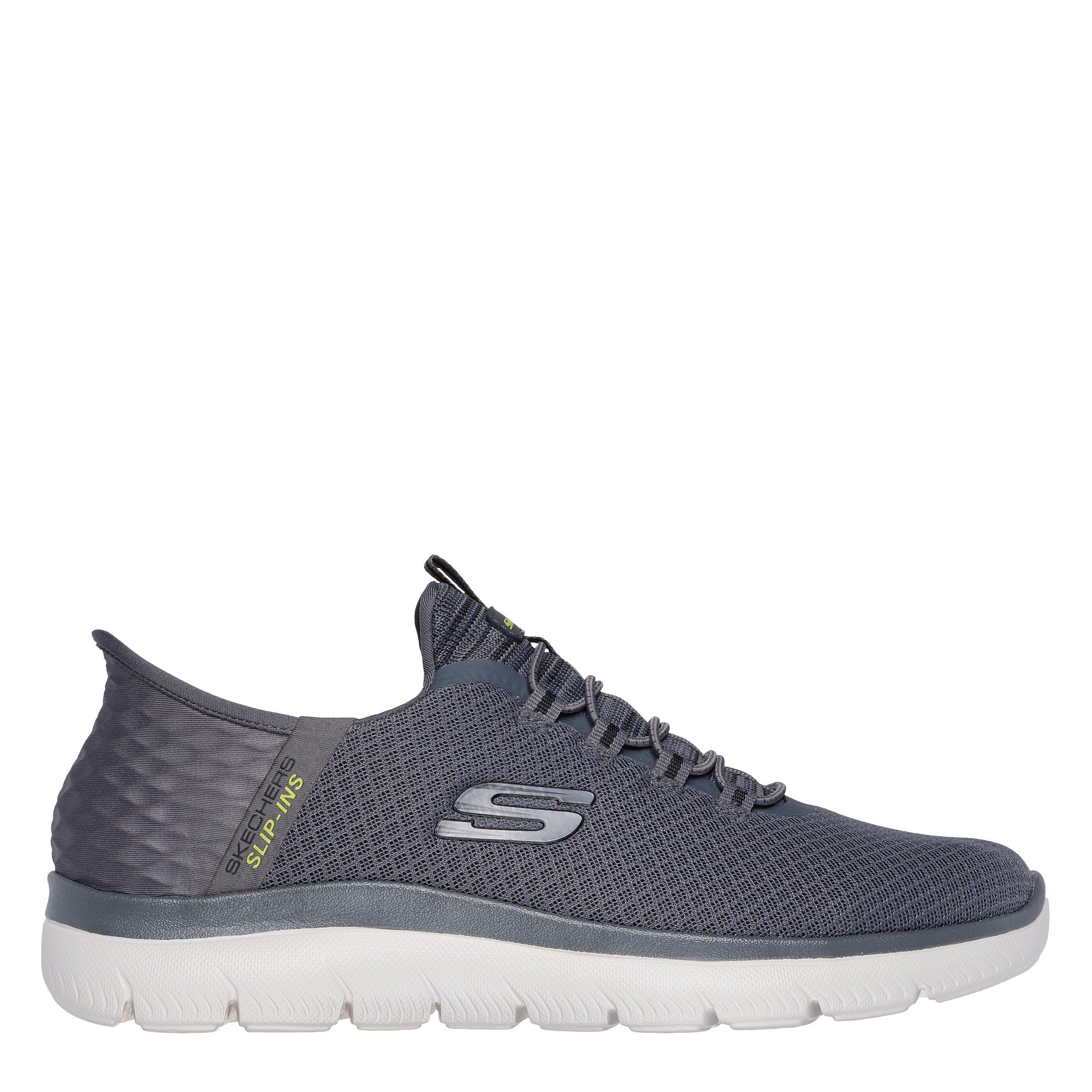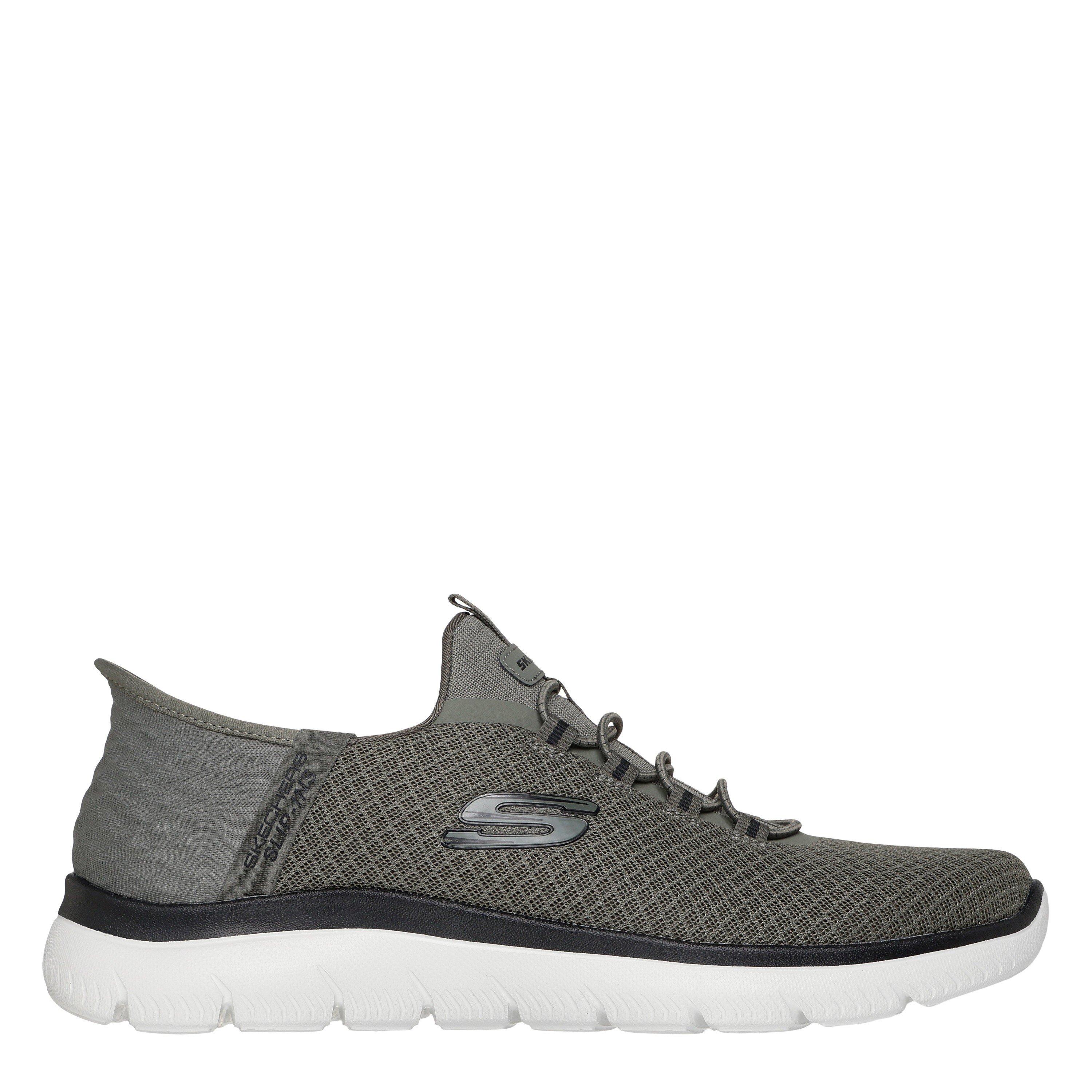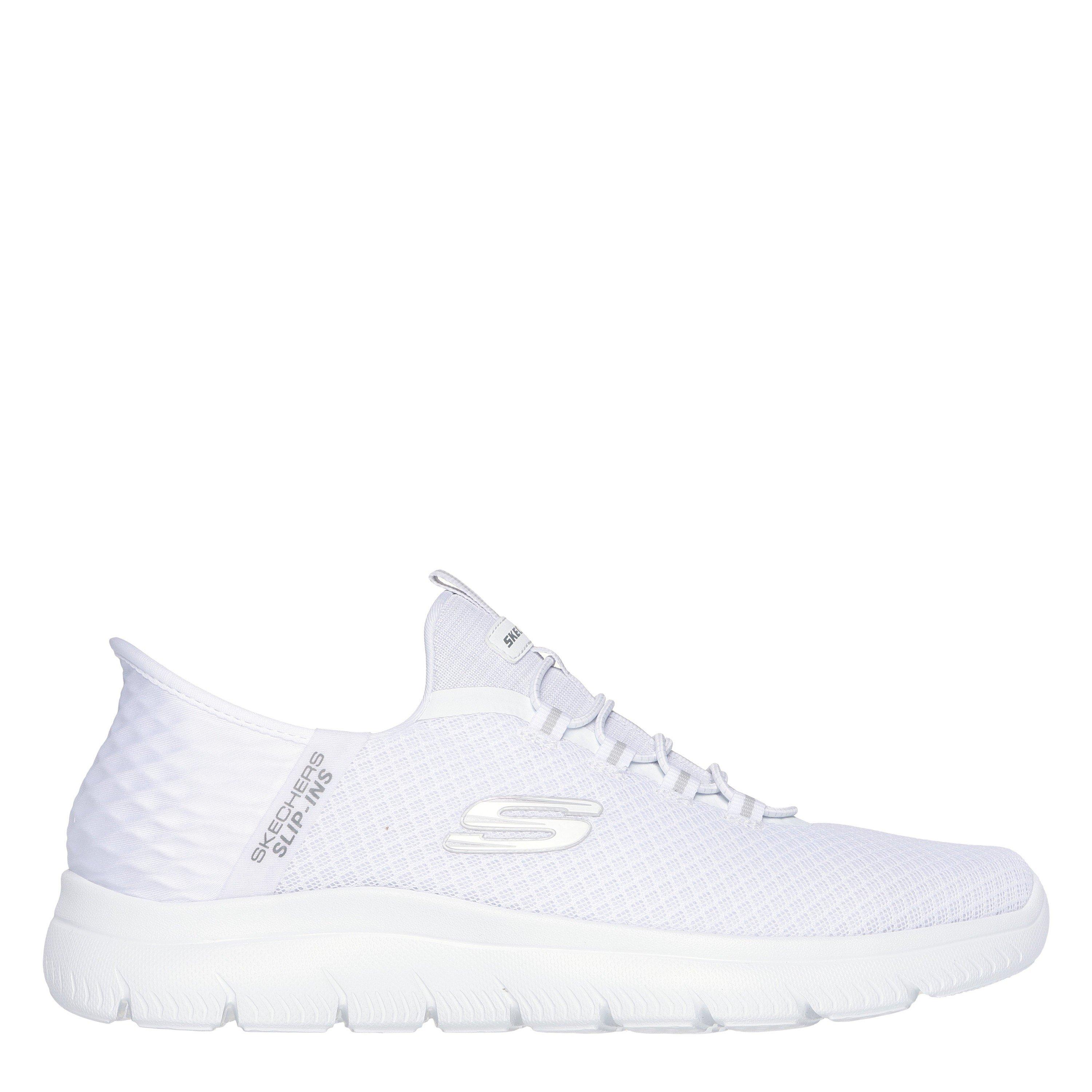Step into easy-wearing comfort with Skechers Hands Free Slip-ins®: Summits - High Range. Along with our Exclusive Heel Pillow™ that holds your foot securely in place, this vegan style features a unique Skechers Slip-ins® molded heel panel, a mesh upper with fixed laces, and a cushioned Skechers Air-Cooled Memory Foam® insole.