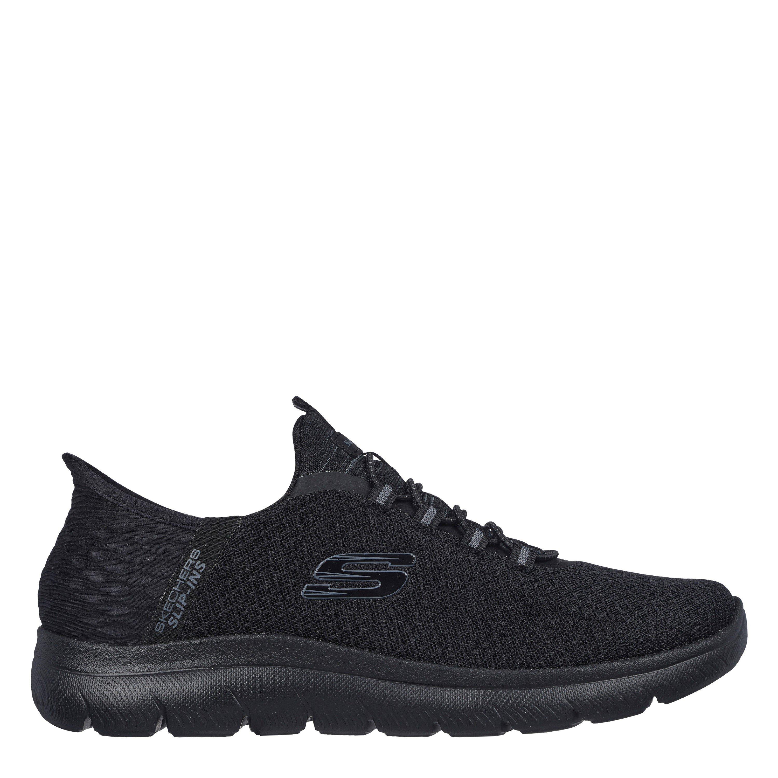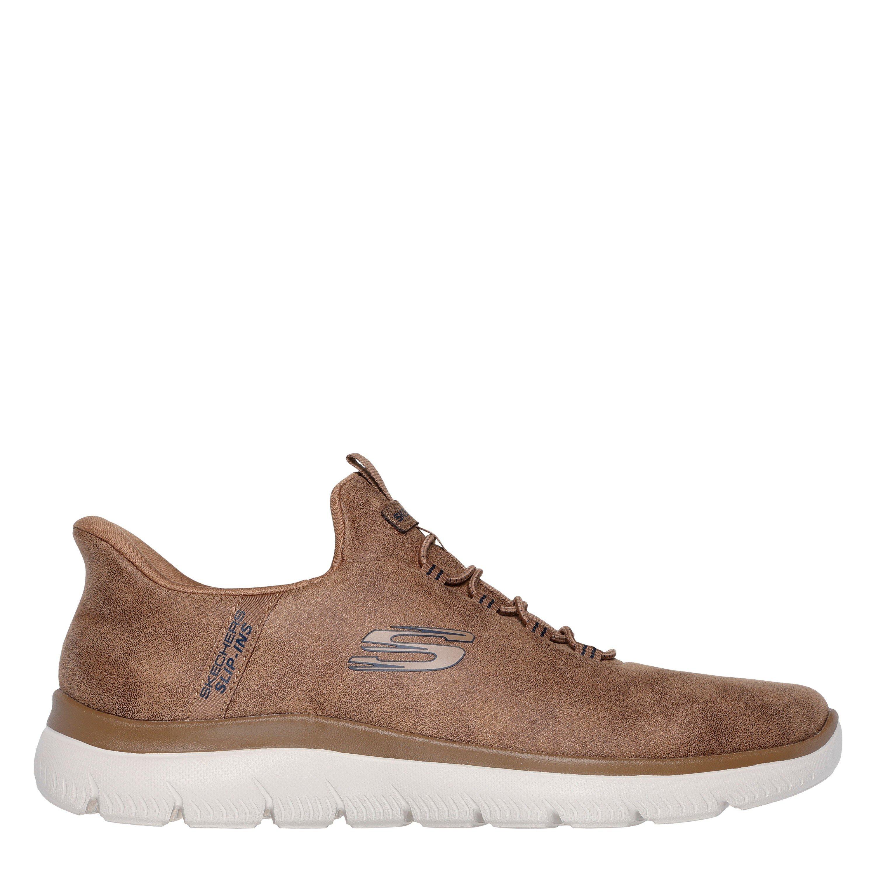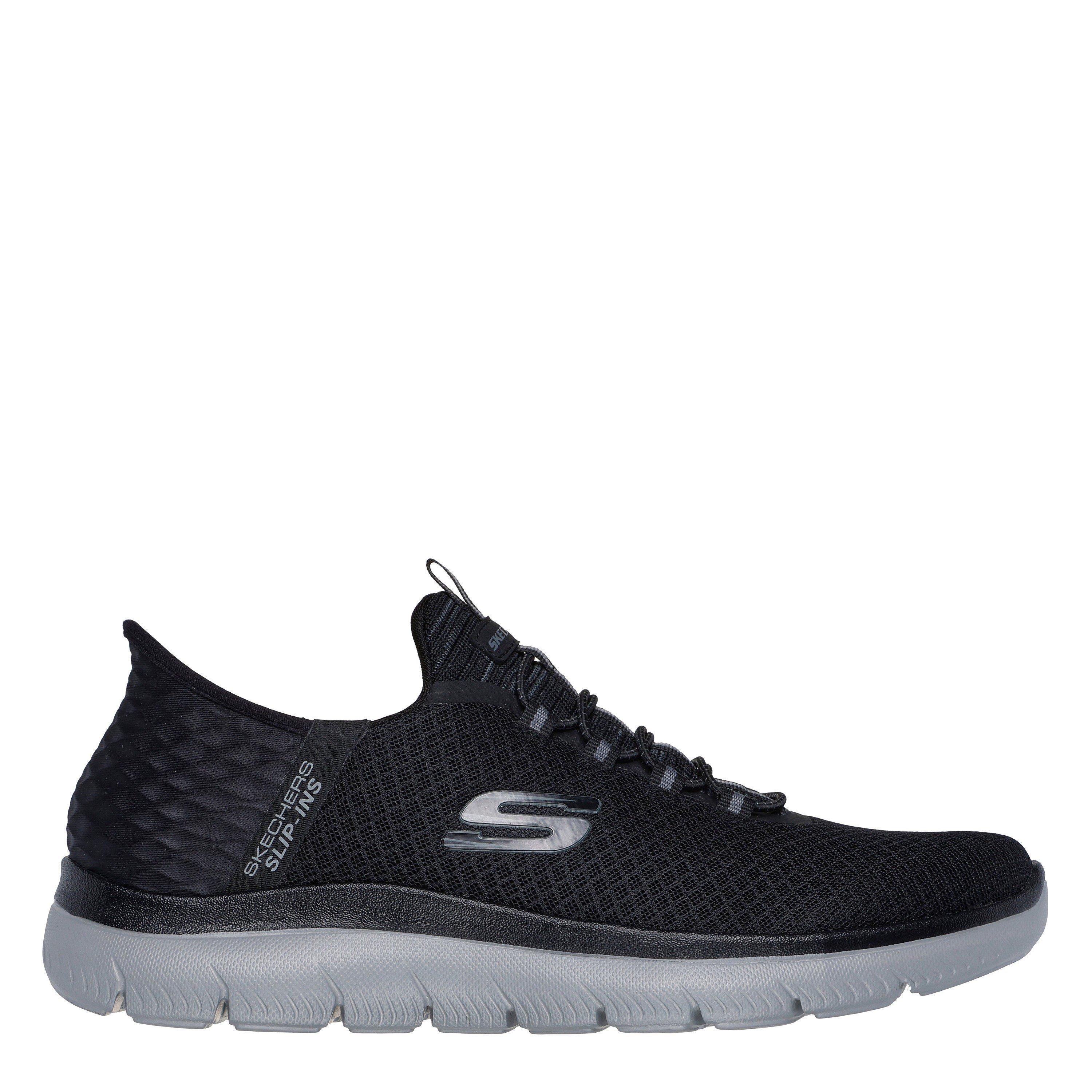 Step into easy-wearing comfort with Skechers Hands Free Slip-ins®: Summits - High Range. Along with our Exclusive Heel Pillow™ that holds your foot securely in place, this vegan style features a unique Skechers Slip-ins® molded heel panel, a mesh upper with fixed laces, and a cushioned Skechers Air-Cooled Memory Foam® insole.