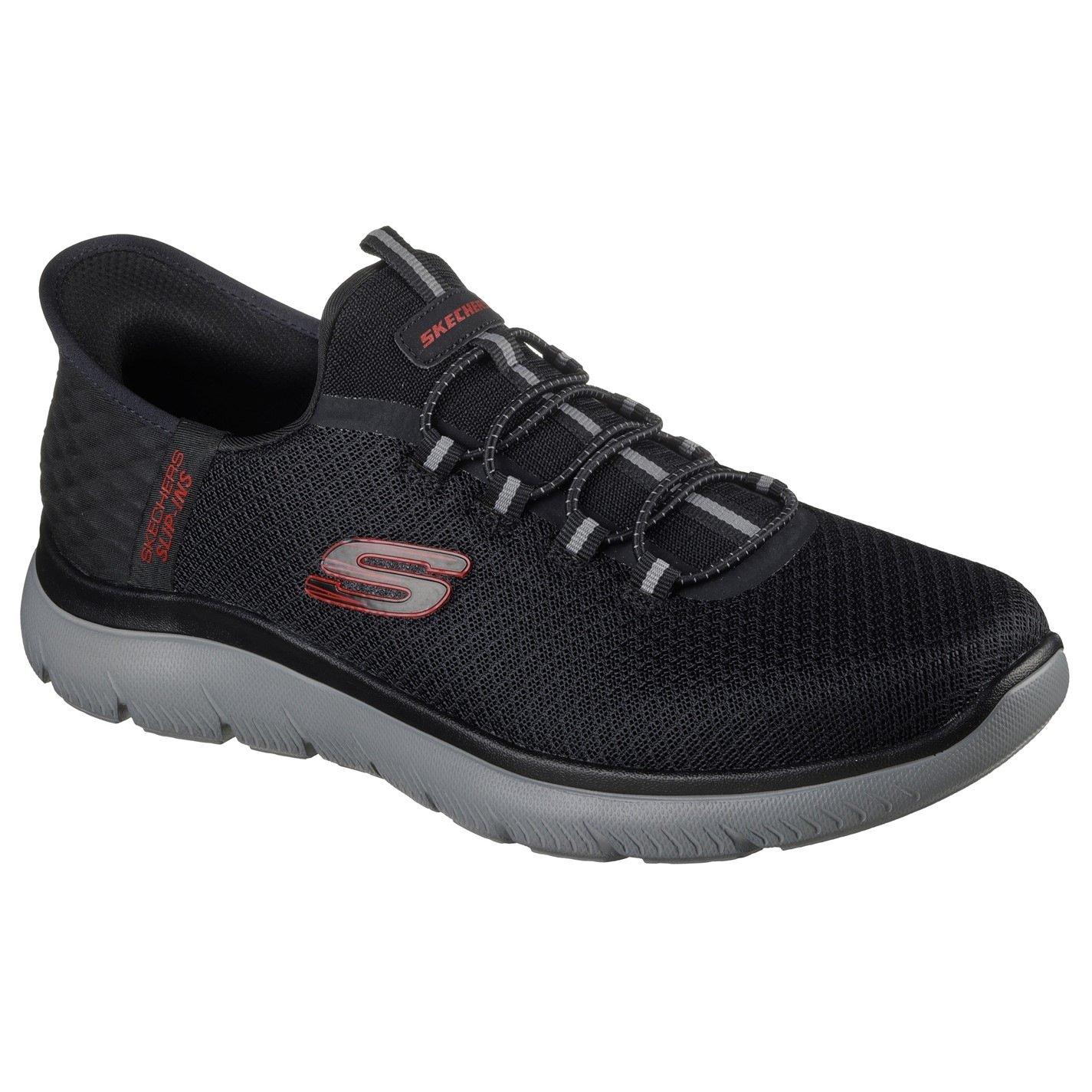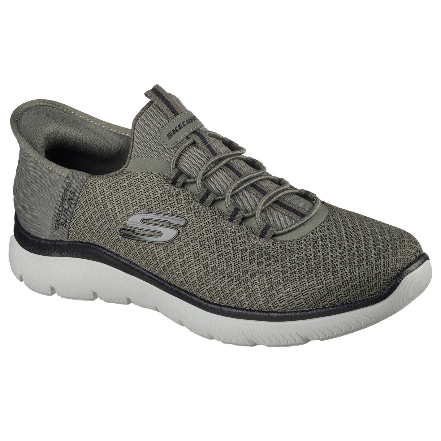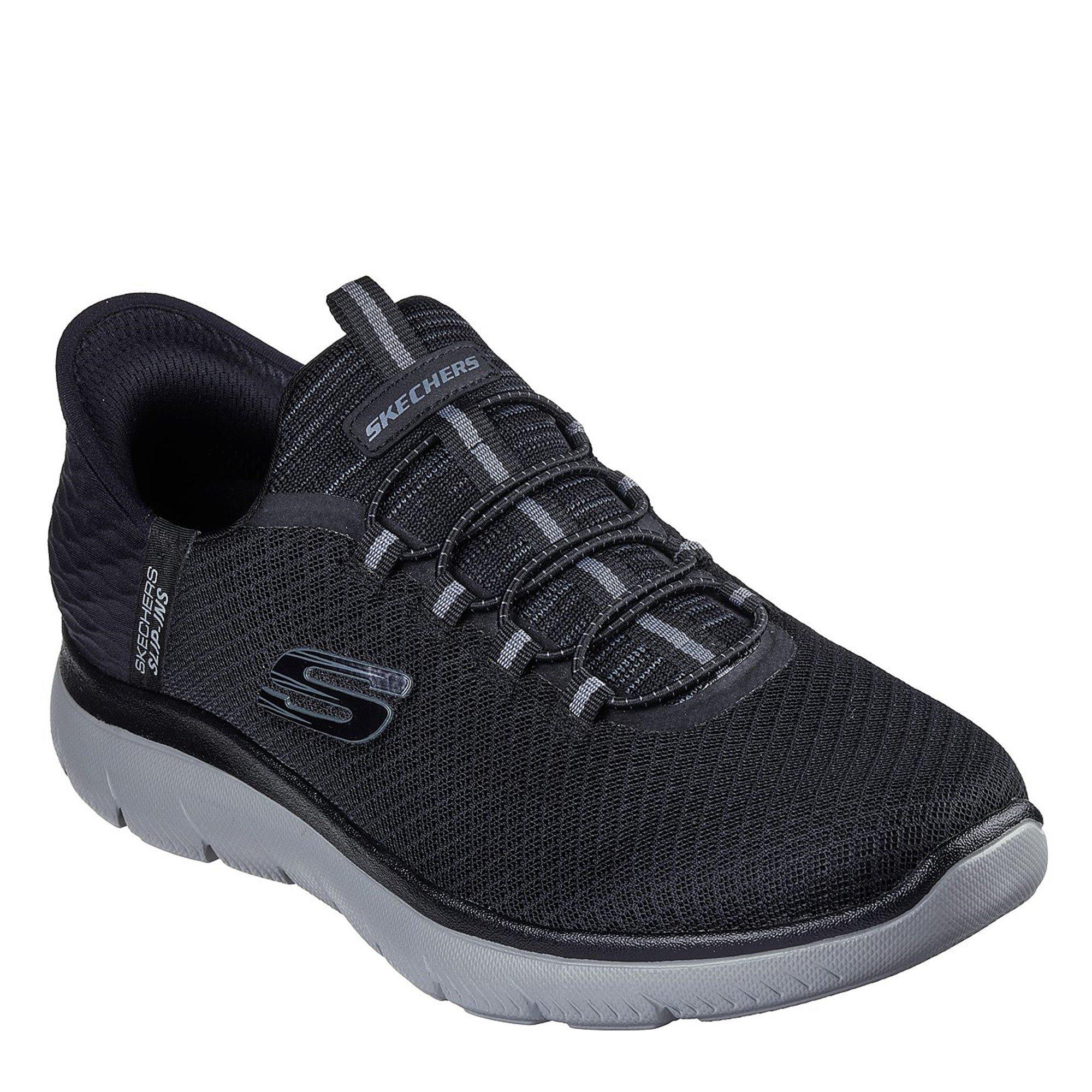 Step into easy-wearing comfort with Skechers Hands Free Slip-ins®: Summits - High Range. Along with our Exclusive Heel Pillow™ that holds your foot securely in place, this vegan style features a unique Skechers Slip-ins® molded heel panel, a mesh upper with fixed laces, and a cushioned Skechers Air-Cooled Memory Foam® insole.