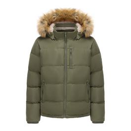 Men's 2 Zip Bubble Faux Fur Trim Fleece Lined Short Puffer Jacket