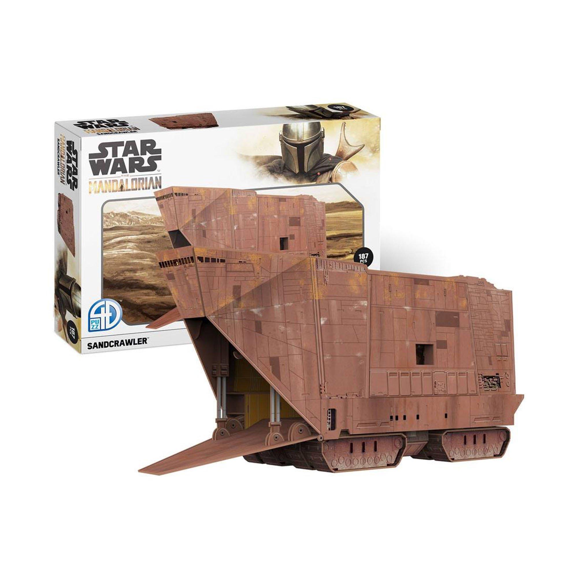Revell 3D cardboard model kit: The Mandalorian Sandcrawler Experience the world of Star Wars with the fascinating Revell 3D cardboard model kit of the Sandcrawler from The Mandalorian. This impressive 1:78 scale model is an authentic representation of the iconic vehicle featured in the popular series, with 187 pieces. With a length of 516 mm, a width of 163 mm and a height of 232 mm, the sandcrawler offers model builders aged 10 and over an exciting and challenging task. The highlight: no glue is required to assemble this detailed model, making it a clean and accessible activity for fans of all ages.