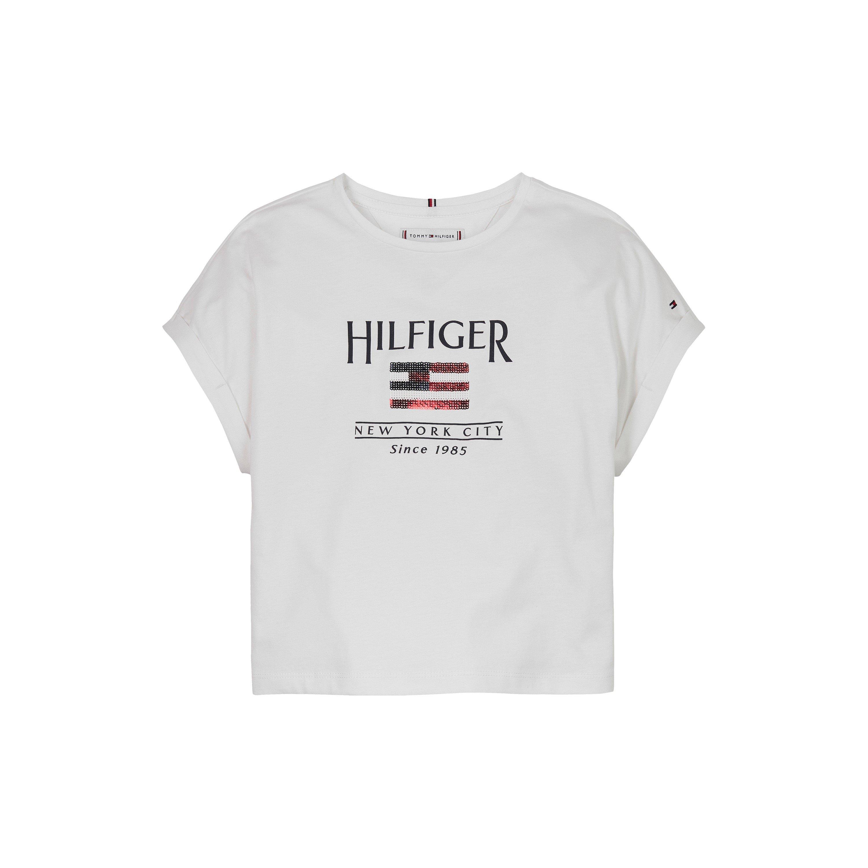 Tommy Hilfiger's Kids' Sequins Flag Regular Fit T-Shirt adds American style to little wardrobes. The comfortable regular fit features a standout sequined flag design for a playful twist on classic branding.
