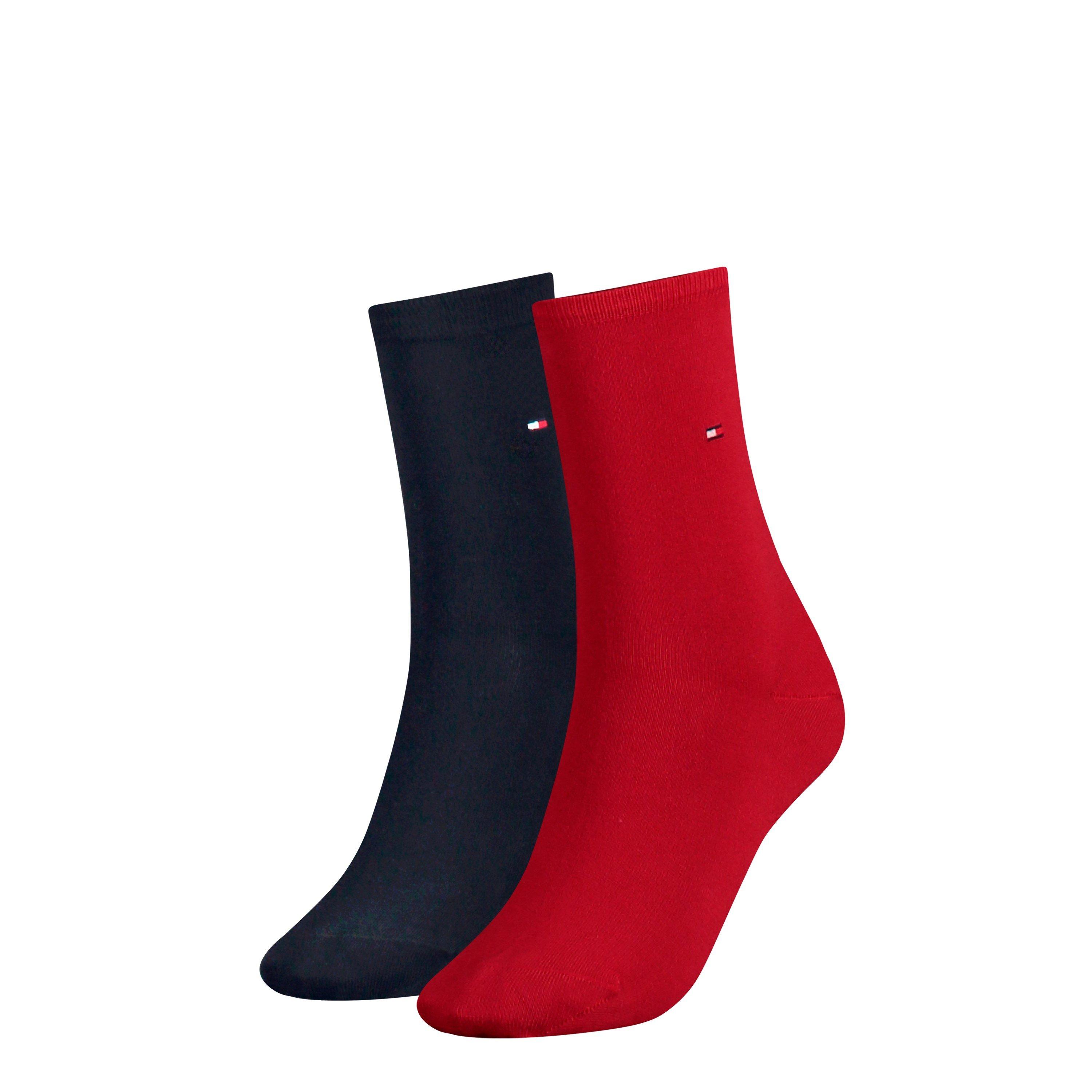 Tommy Hilfiger Women's Ribbed Crew Socks feature classic branding and practical comfort. The ribbed design ensures a secure fit while reinforced stress points improve durability, making these essentials ideal for both casual and athletic wear.