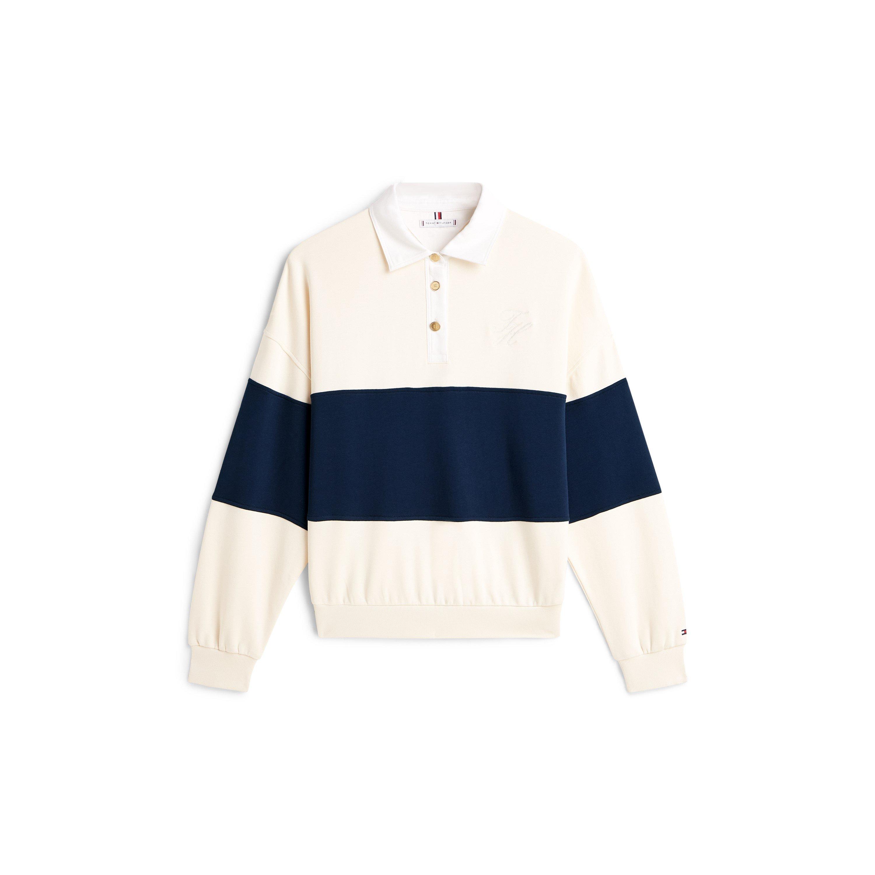 The Tommy Hilfiger Women's Rugby Polo Shirt brings classic sportswear structure to everyday wear. A buttoned placket and ribbed collar define the traditional style.