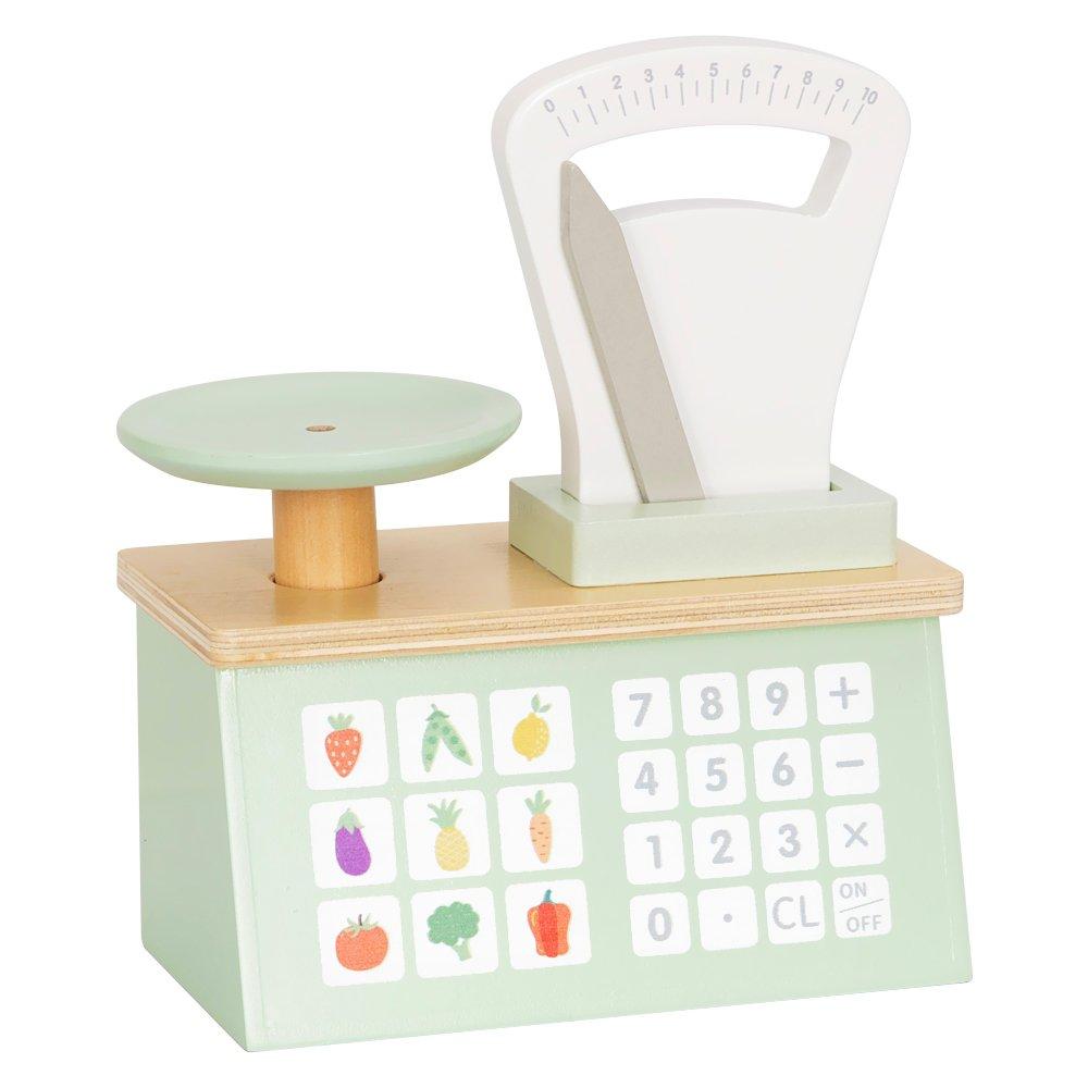 Interactive Elements for Fun Includes a functioning scale, a keypad for number entry—perfect for counting, sorting, and practicing basic math. Vegetables and fruits not included.