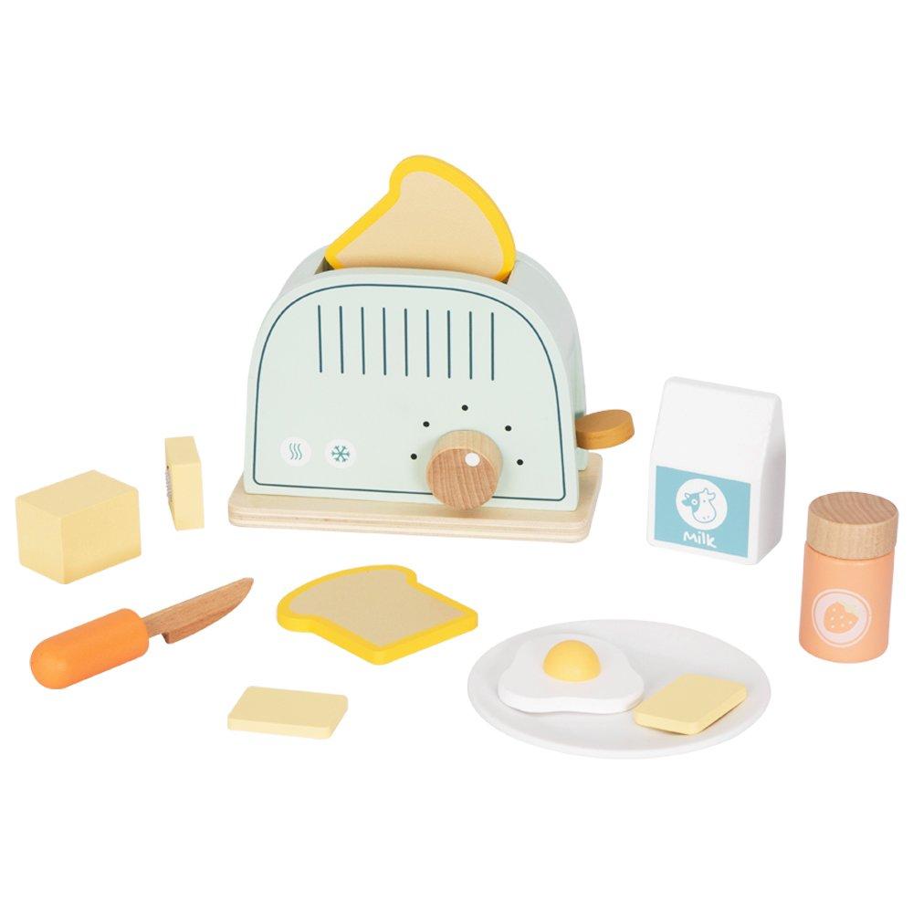 - This adorable wooden toaster set includes all the essentials for a fun and interactive pretend breakfast experience.