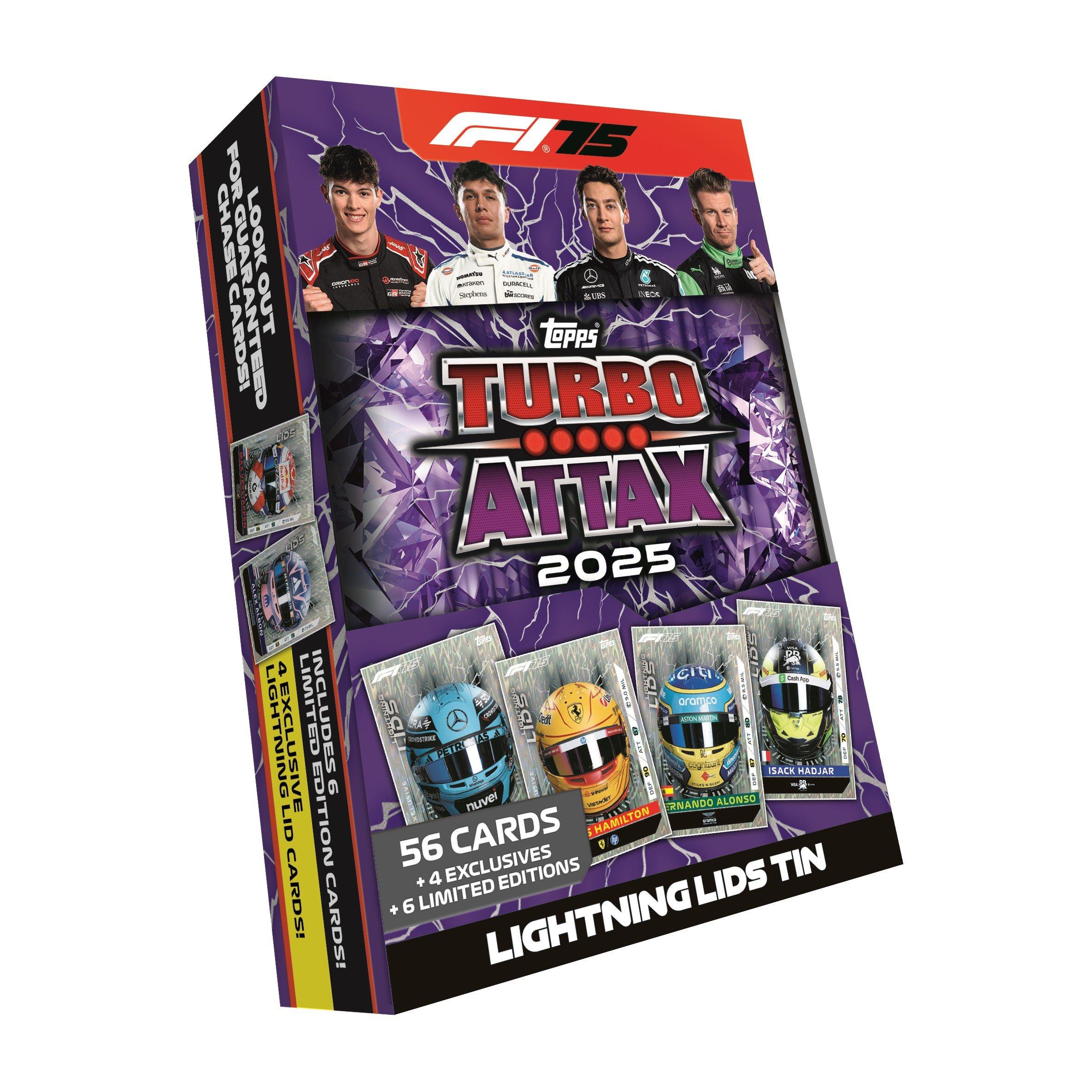 Topps Turbo Attax 2025 races back for another jam-packed season of collecting with over 400 outstanding new cards to collect. New card categories such as Rainmaster, Team Dynasty, Pole Position, Track Profiles, National Pride, Rookie Rising, F2 Team cards, F3 Team cards, Pit Stop Pros and Constructor Kings will inspire every collector. There are returning favourites such as Podium Power, 100 Club, F1 Super Novas, Stars of Tomorrow, Epic Moments plus the biggest ever collection of Legends, with 18 Icons of the Grid cards to collect. Helping to celebrate F1's 75th Anniversary are the rare 'Diamond Pull' chase cards and the Diamond Edition Mega Tin where lucky collectors have a chance to find a Legend Relic card! Look out for fan favourite Limited Editions such as McLaren Papaya, Brazilian Yellow and Red Hot Chilli plus Diamond parallels are available throughout the collection. #thesepacksarestacked