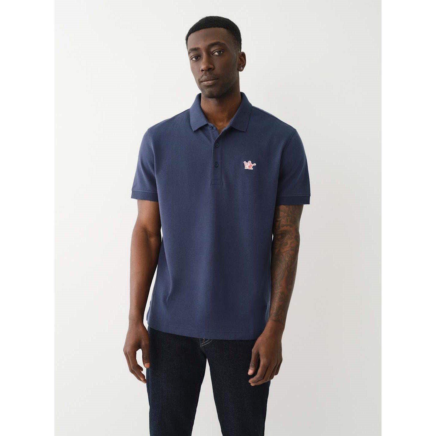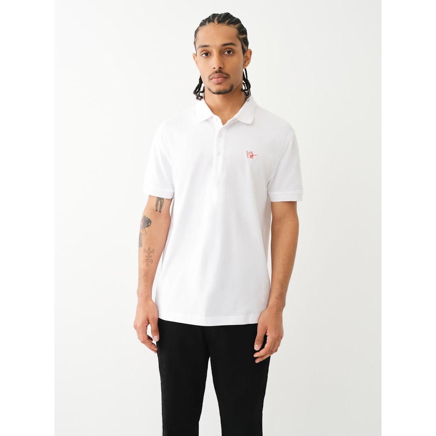 True Religion's Patched Logo Short Sleeve Polo Shirt pairs classic styling with its own brand identity. The clean fabric design features the embroidered Buddha logo patch, while the traditional collar and button placket maintain a classic polo look.