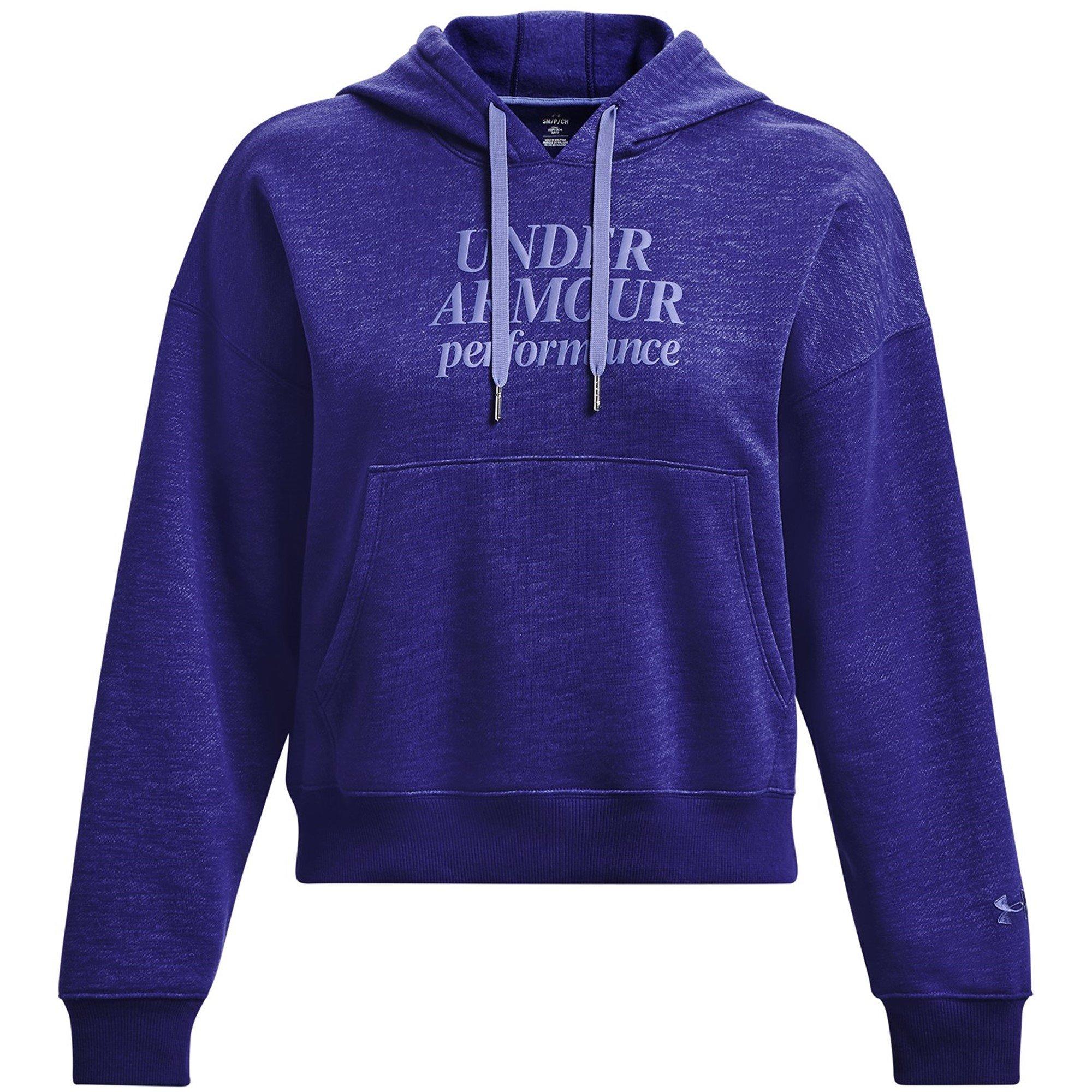 The ribbed cuffs and bottom hem ensure a snug and secure fit, keeping you comfortable even during intense training sessions. Designed with drop hem shoulders and slightly oversized sleeves, this hoodie not only provides a relaxed and stylish look but also allows for a full range of motion. Equipped with a drawstring hood, this hoodie offers protection against the elements. To complete the design, the iconic Under Armour performance logo is proudly displayed on the chest, showcasing the brand's commitment to excellence.