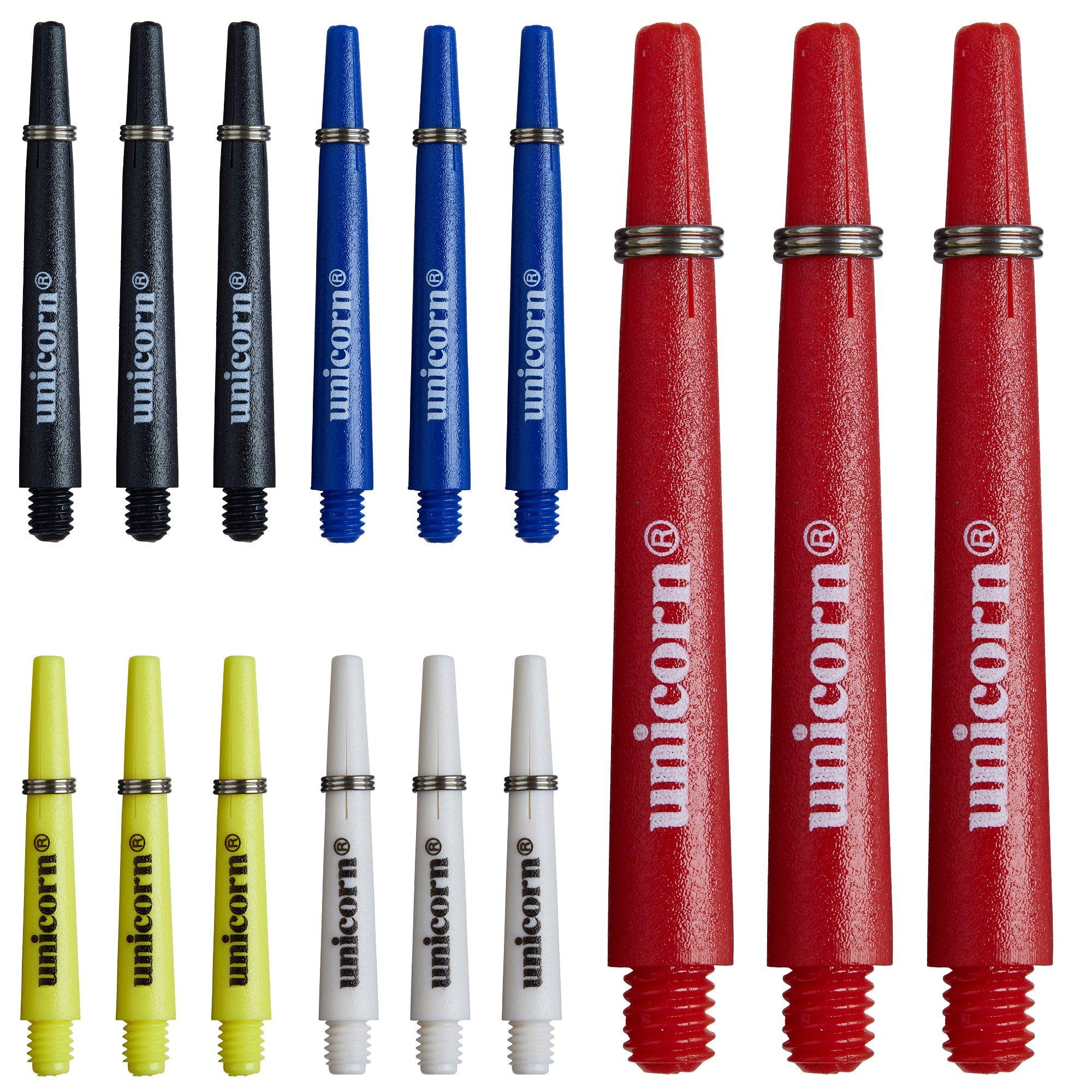 The Unicorn 5 Pack of dart shafts is perfect for replacing and upgrading your current dart set. Completed with Unicorn branding. Please note: The style you receive may vary from the image shown. 🎯 Assorted strong solid colours to look great with virtually all barrel and flight combinations