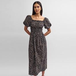 Chocolate Polka Dot Print Puff Sleeve Midi Dress