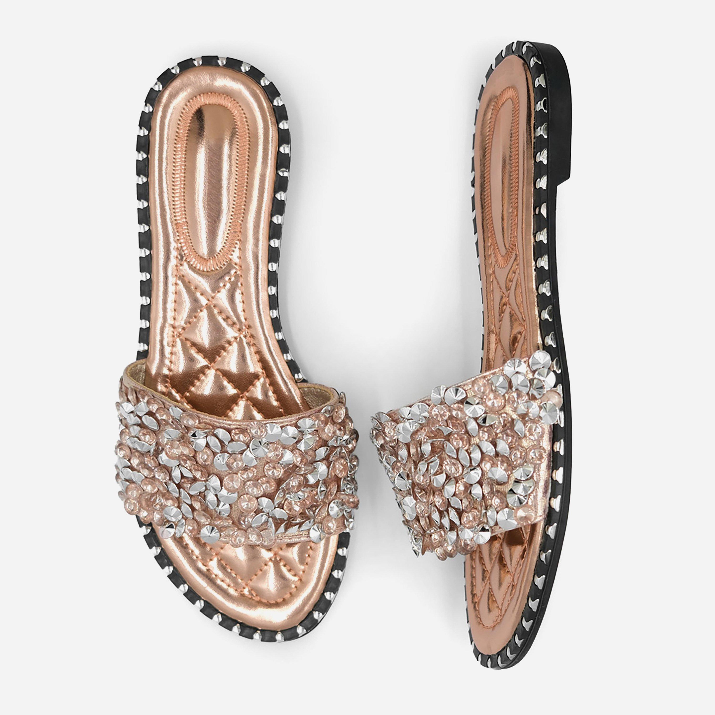 Invest in our Diamante Sparkly Flat Sliders and experience the perfect blend of style, comfort, and durability. Step out with confidence and make a fashion statement with every stride.
