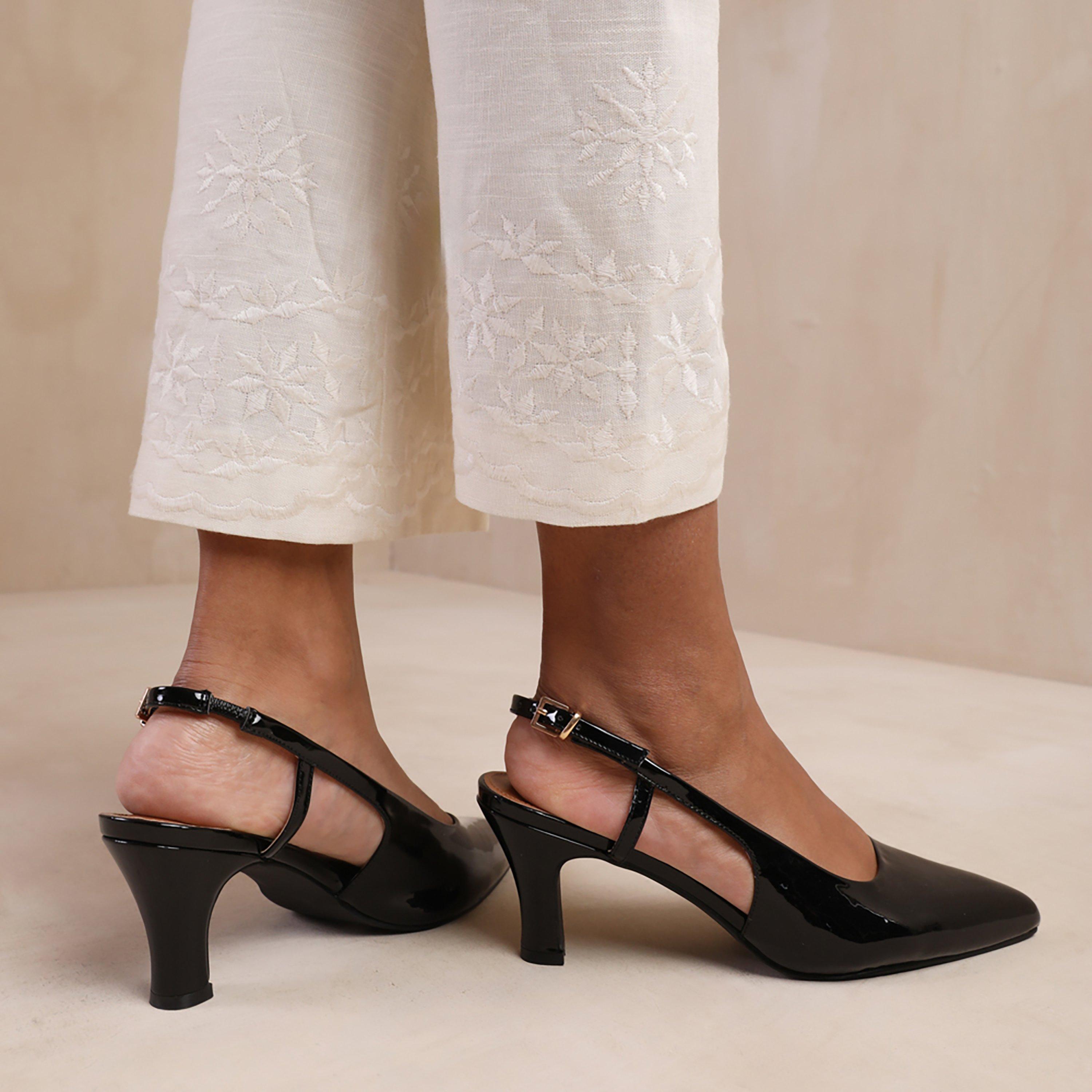 - Low heel offers elevation with secure footing
