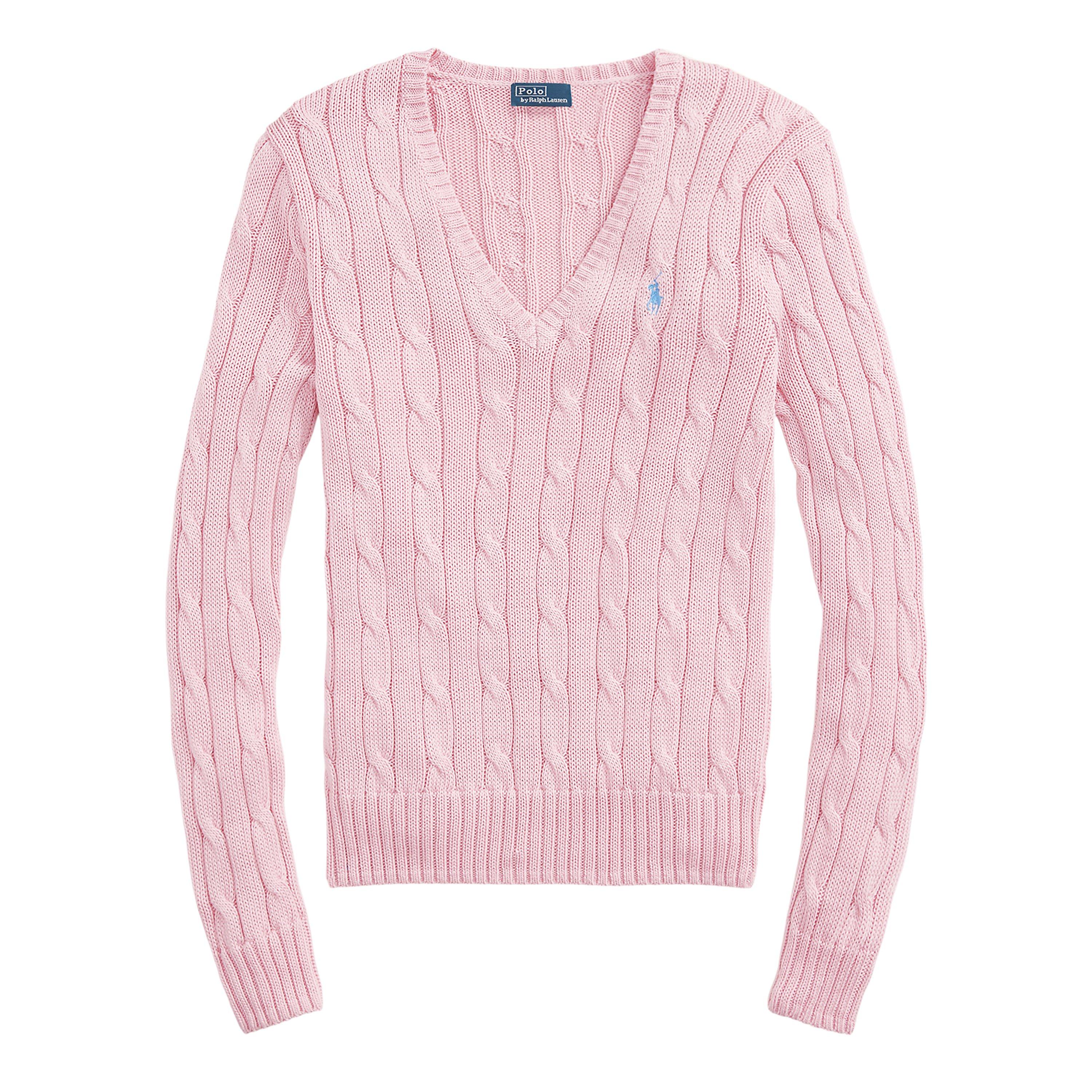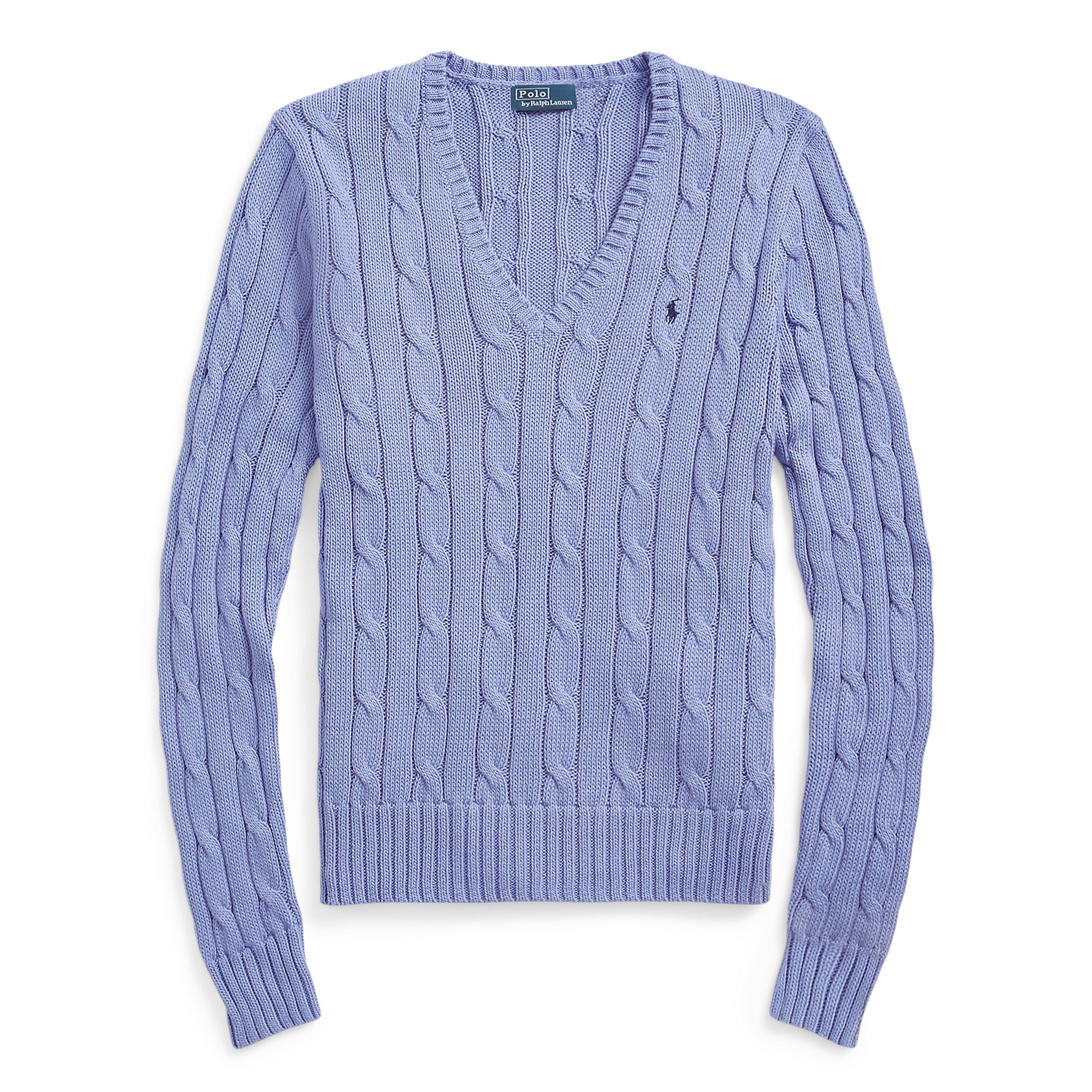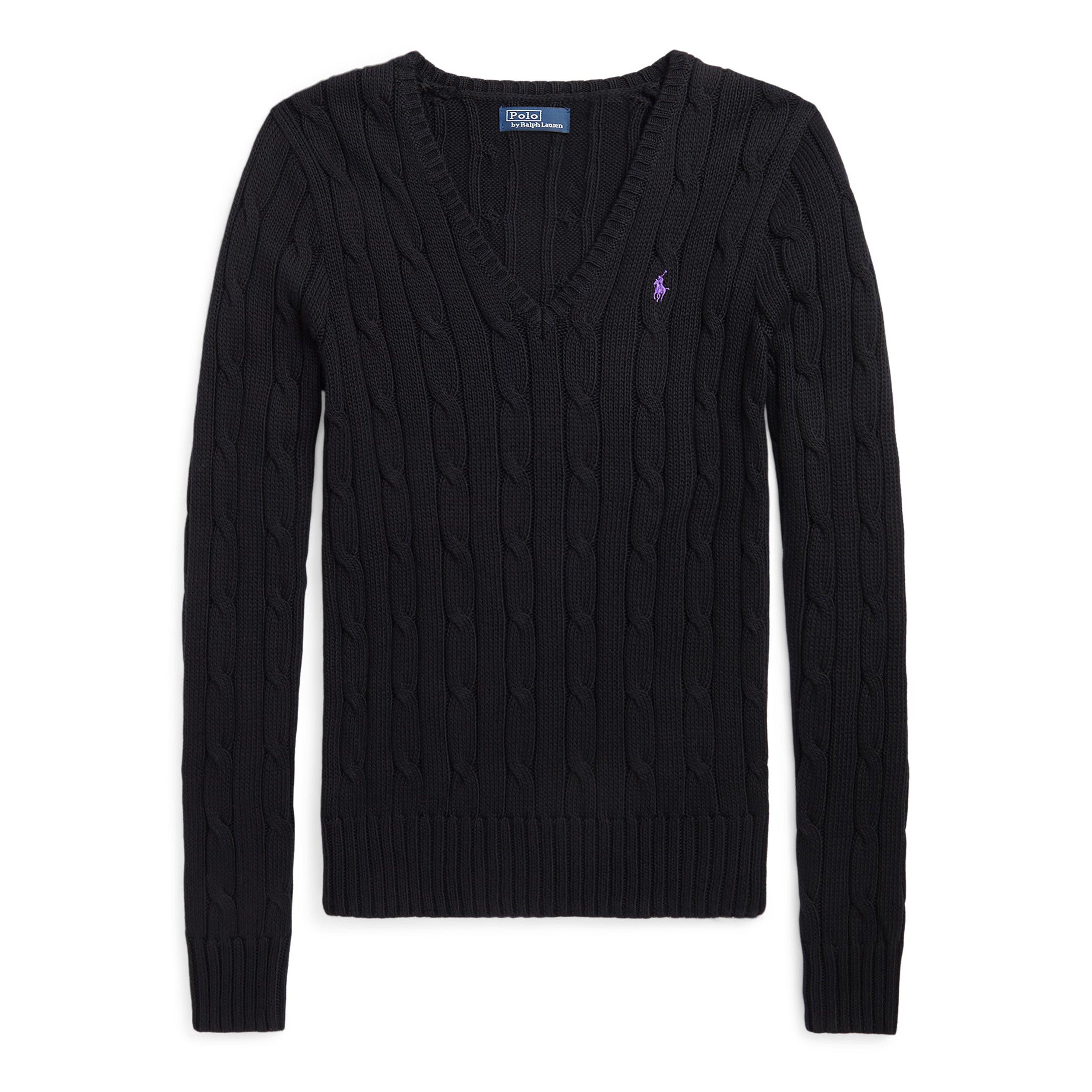 Timeless cable-knit patterns define this impeccably crafted Polo Ralph Lauren jumper. A classic V-neckline frames the design while the signature pony embroidery adds that distinctive mark of quality. The long sleeves and ribbed trims create a figure-flattering silhouette that works seamlessly with both casual and smart attire.
