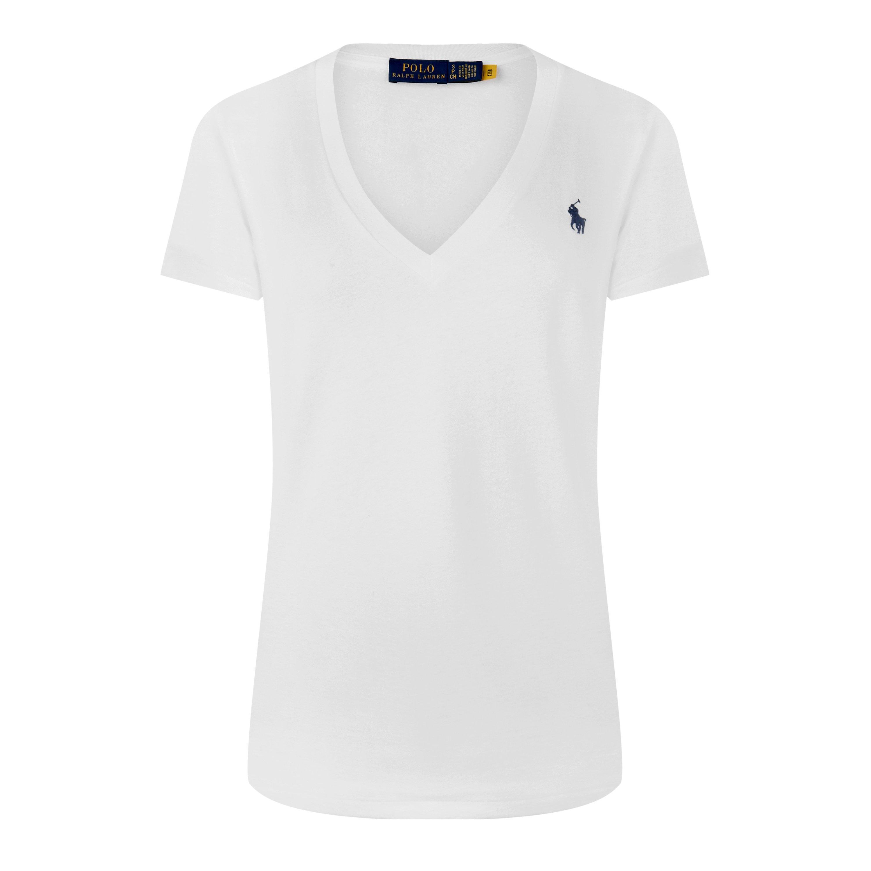 A timeless staple from Polo Ralph Lauren, this V-neck T-shirt delivers classic style with signature detailing. The flattering V-neckline creates a feminine silhouette while the soft cotton fabric ensures day-long comfort. Featuring the iconic polo player embroidered at the chest, this versatile piece seamlessly blends casual appeal with premium quality.