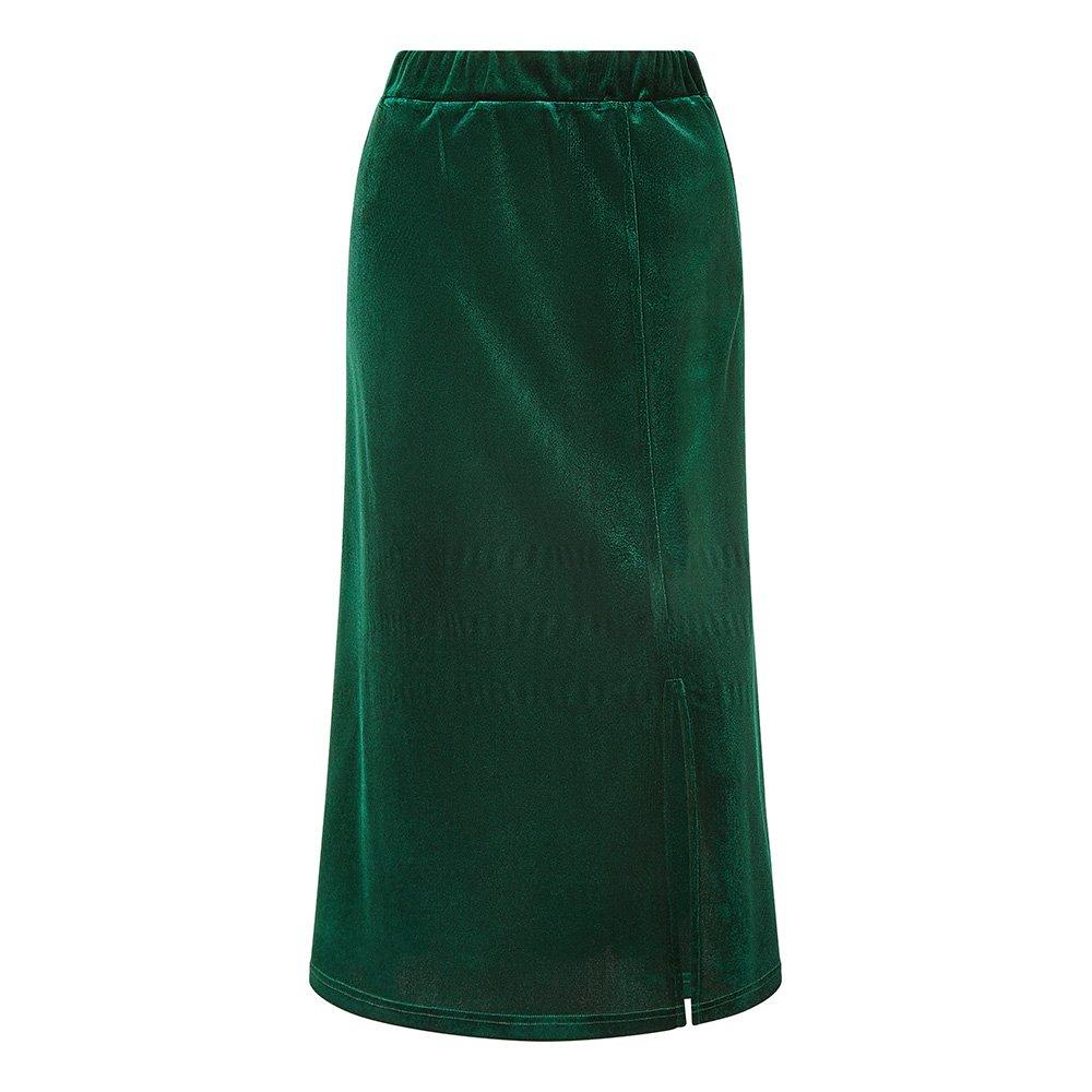 The Front Slit Midi Skirt from Yumi delivers a look with graceful drape. The fabric falls to a midi length, while the front detail adds a contemporary edge to this piece.