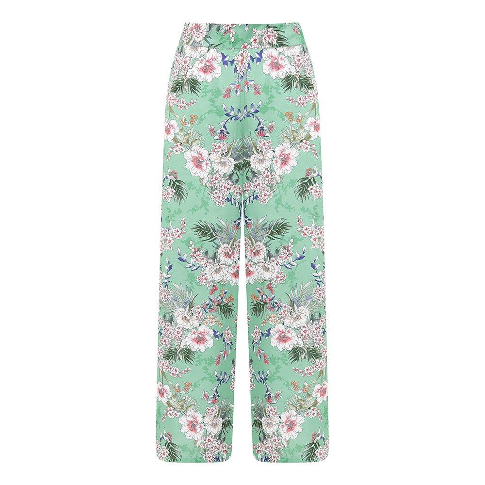 Yumi's Tropical Palm Print Wide Leg Trousers features a palm print with a relaxed shape. The wide-leg design features a bold tropical pattern, creating a structured piece.